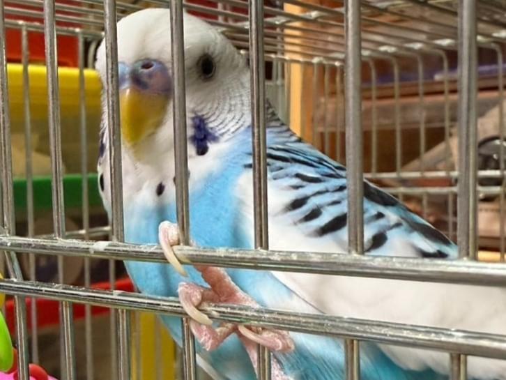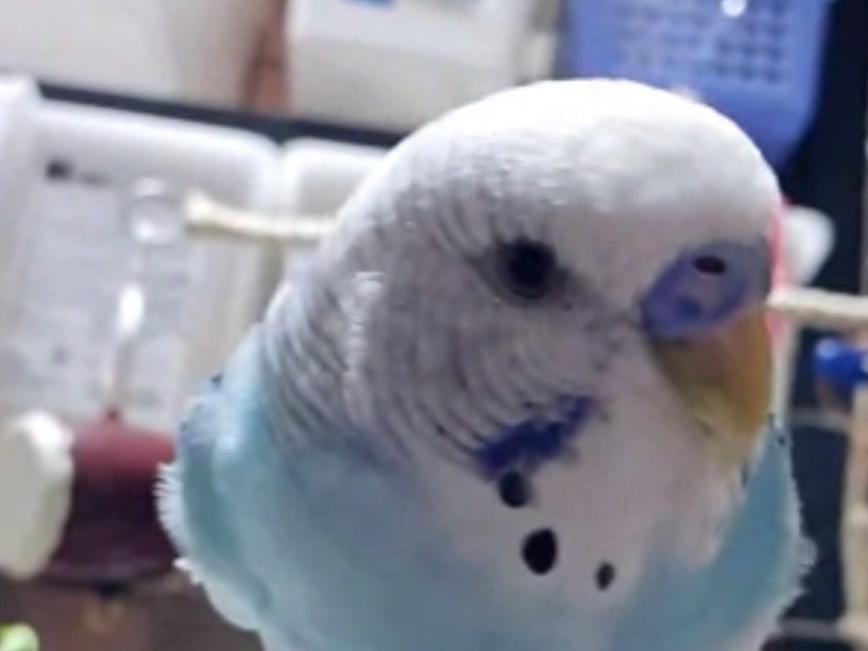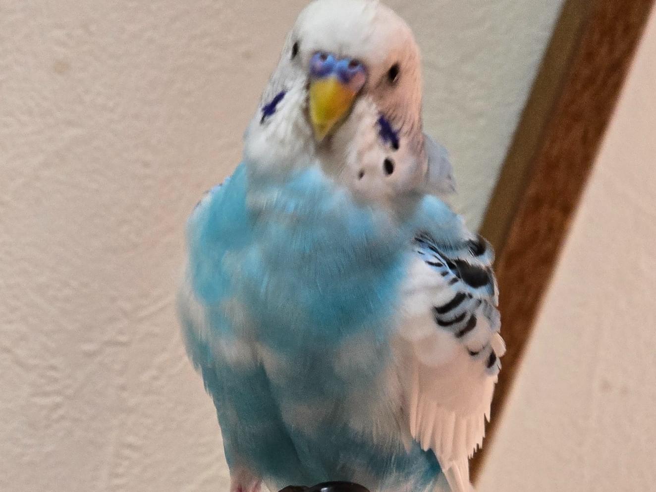 水色と白、黒混ざりのセキセイインコです。人に懐いてます。お喋りも得意です。