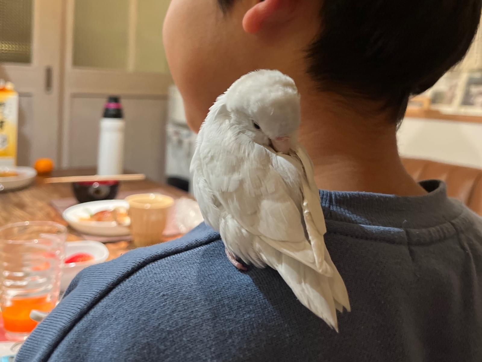 人懐っこく、手を叩きながら「ラクおいで」と呼ぶと肩や頭に乗って来ます。