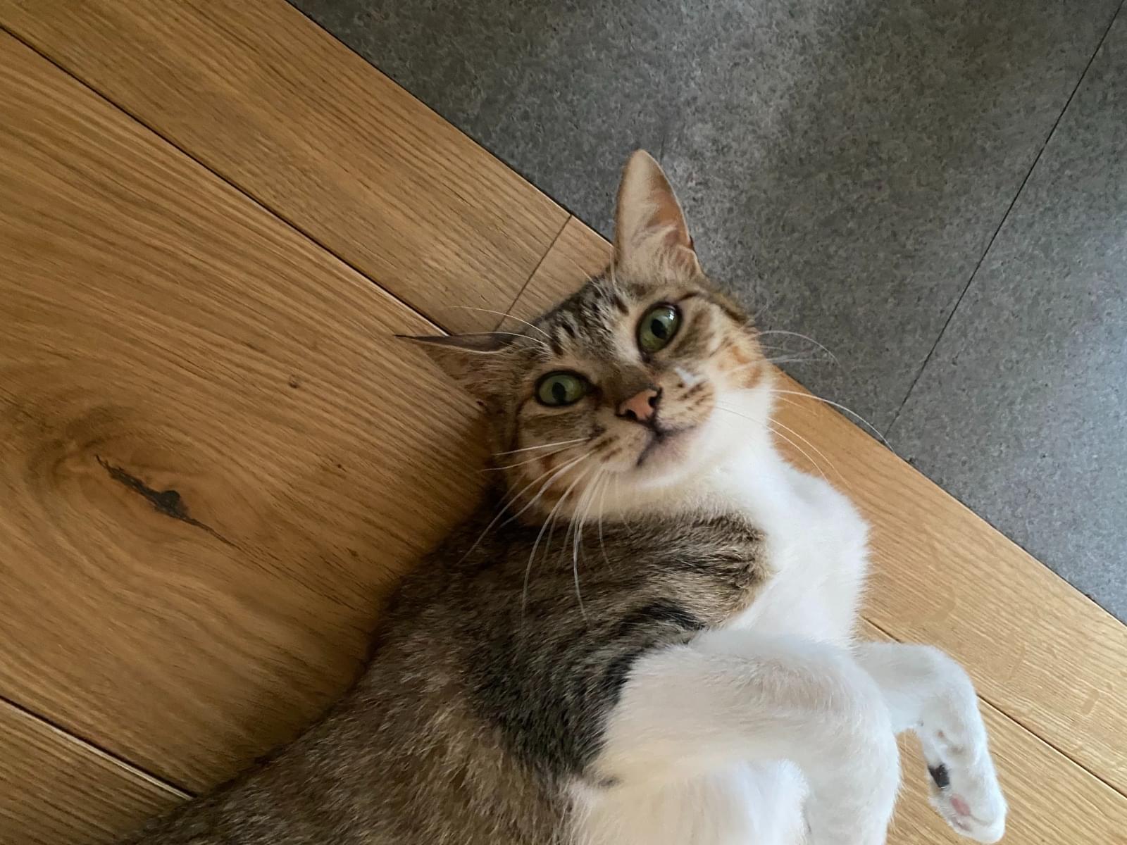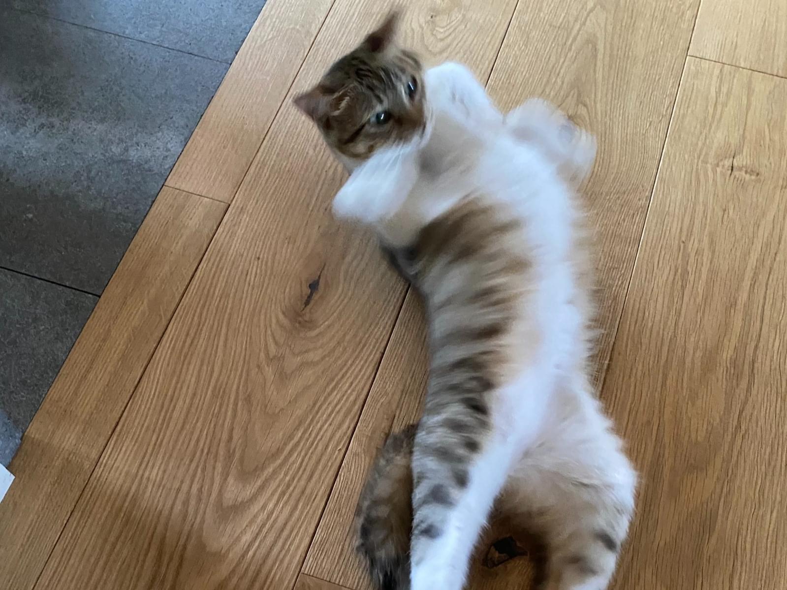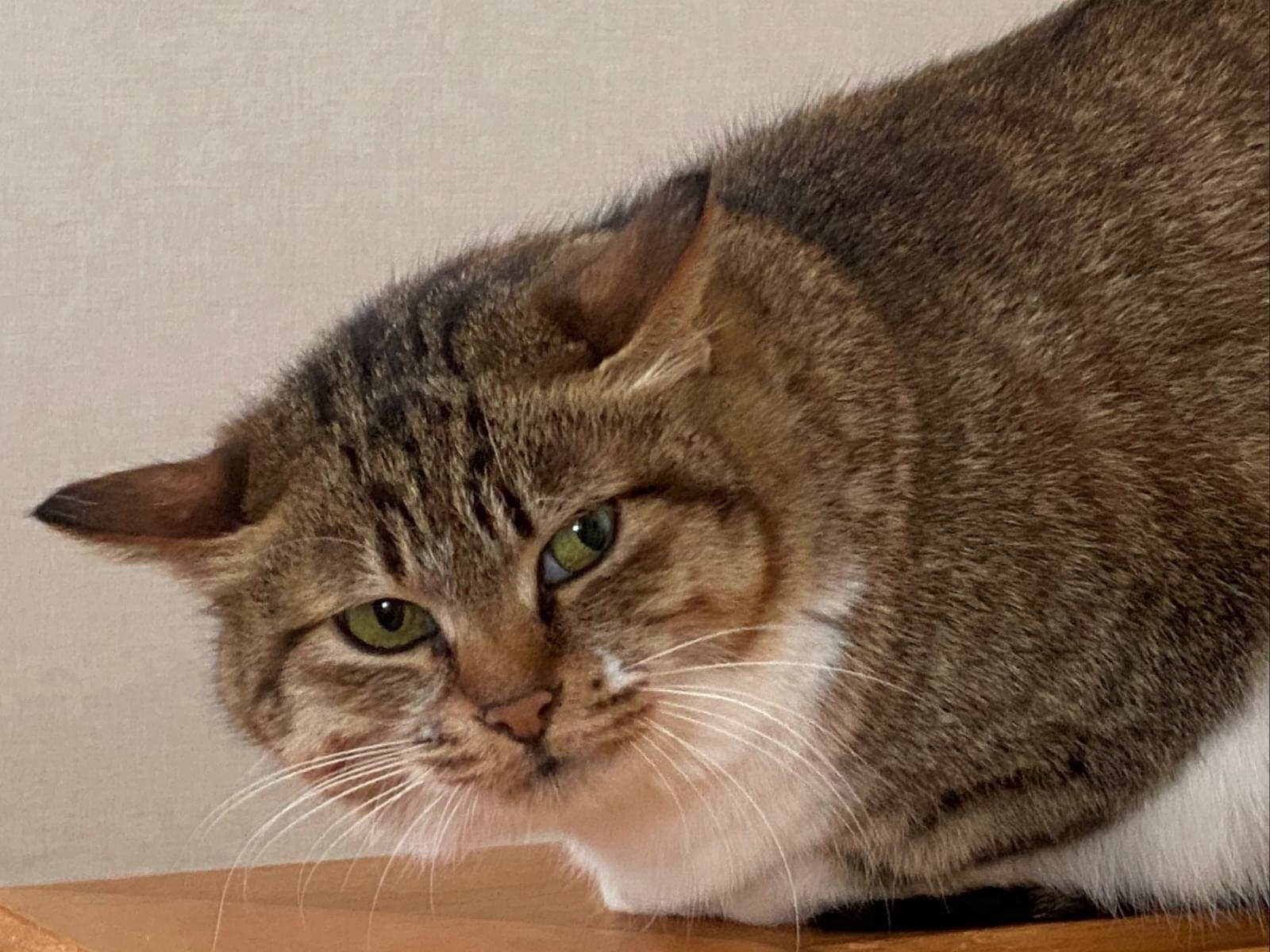 1年前に保護した元野良猫で、警戒心が強く、人にはほとんどなついていません。