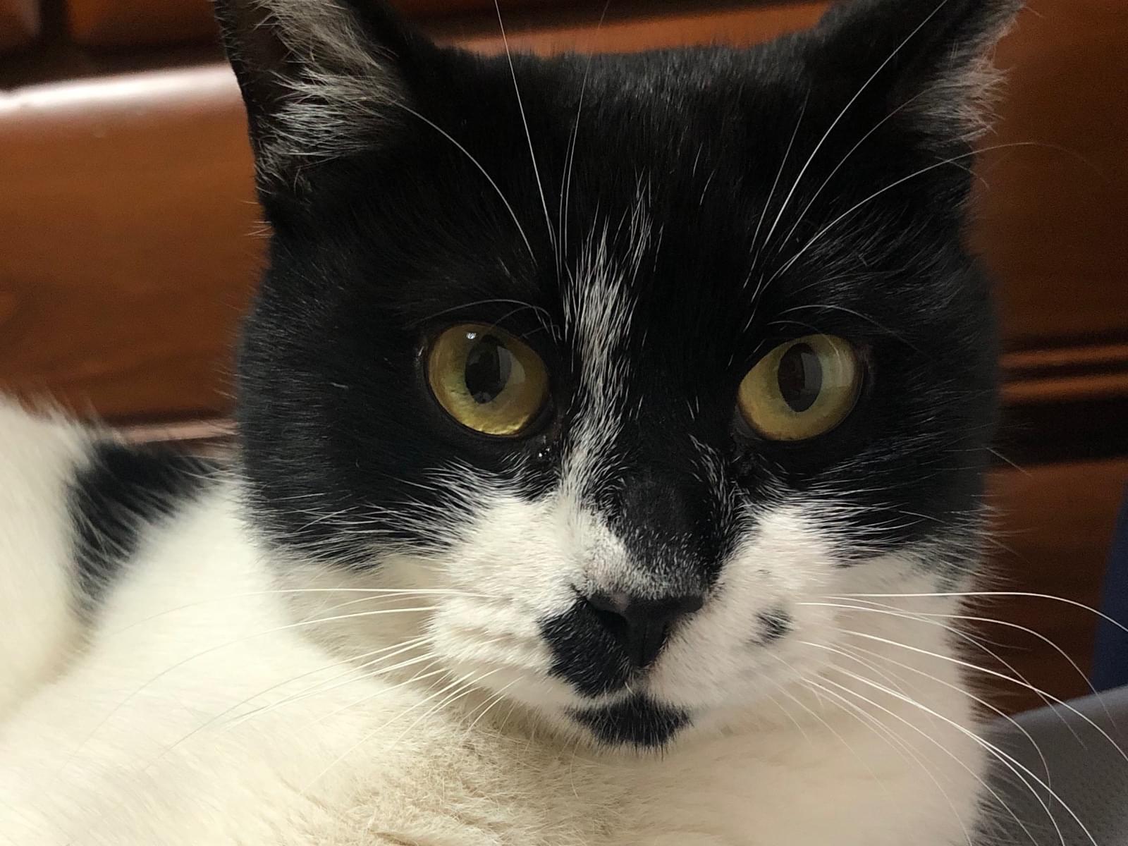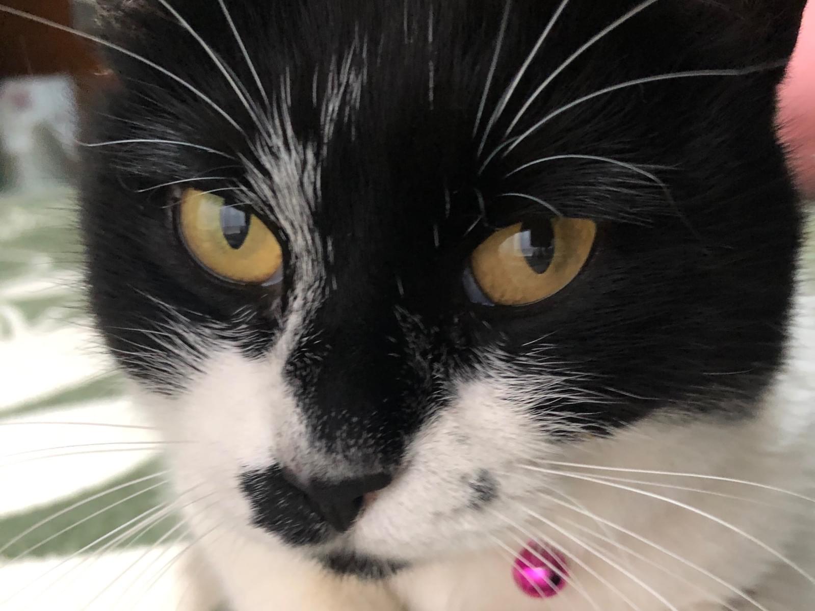 鈴付きの赤い首輪をしてる白黒の猫を探しています