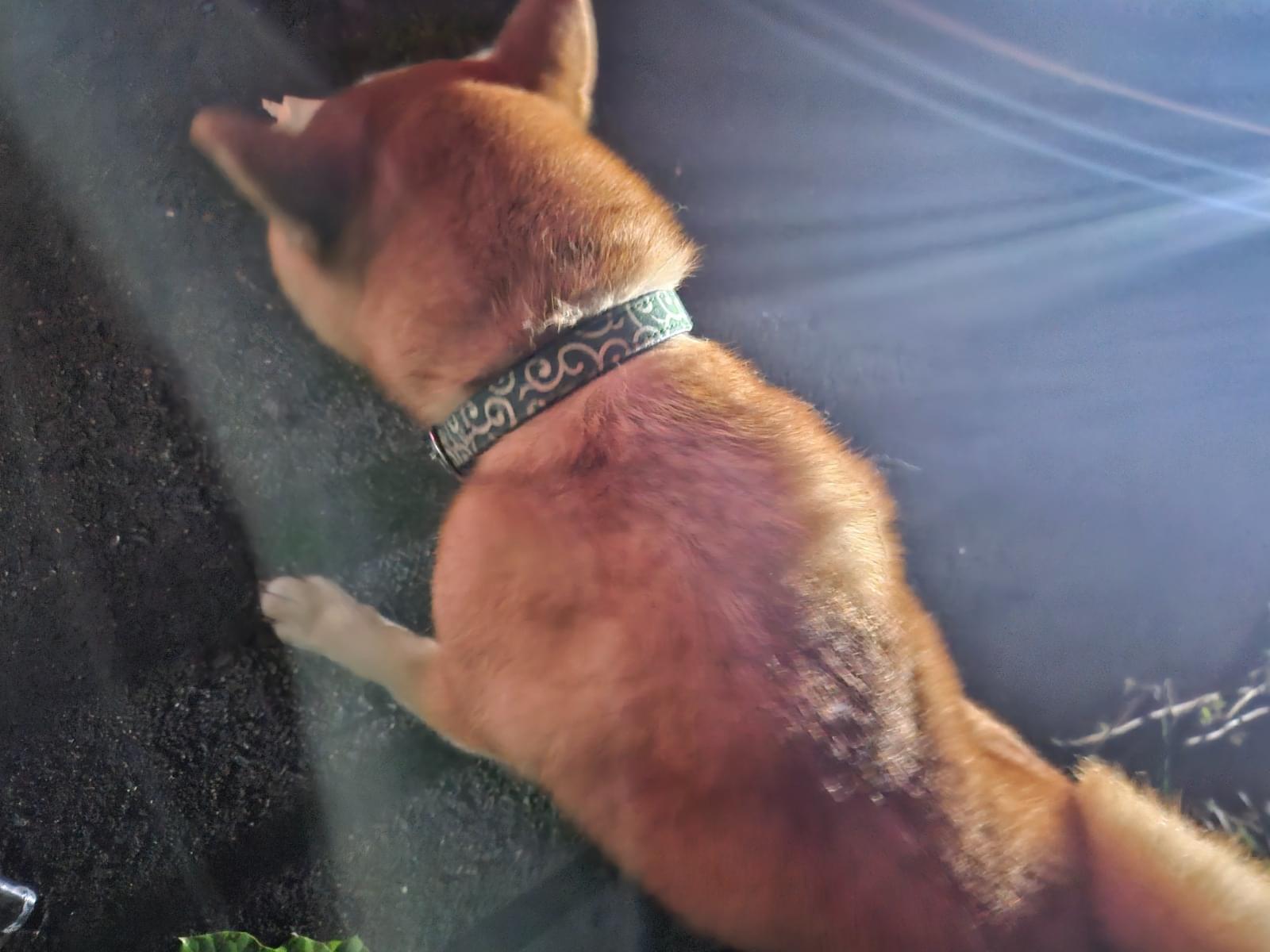 緑の唐草模様の首輪をしている柴犬。石鳥谷の道の駅の南の4号線をしばらくうろちょろしていました。お家がわからず、迷っているようでした。道路に出てしまい、車に引かれてしまいました。