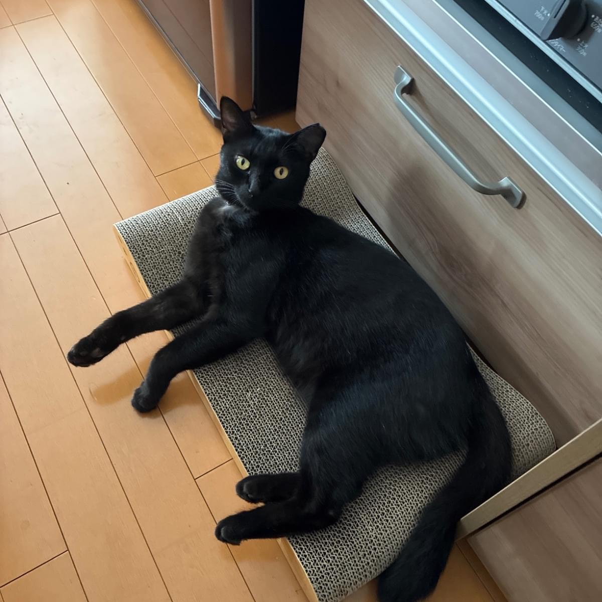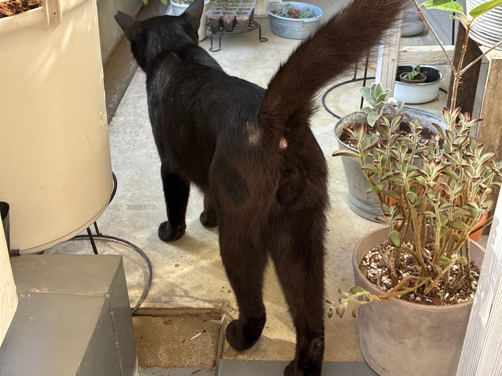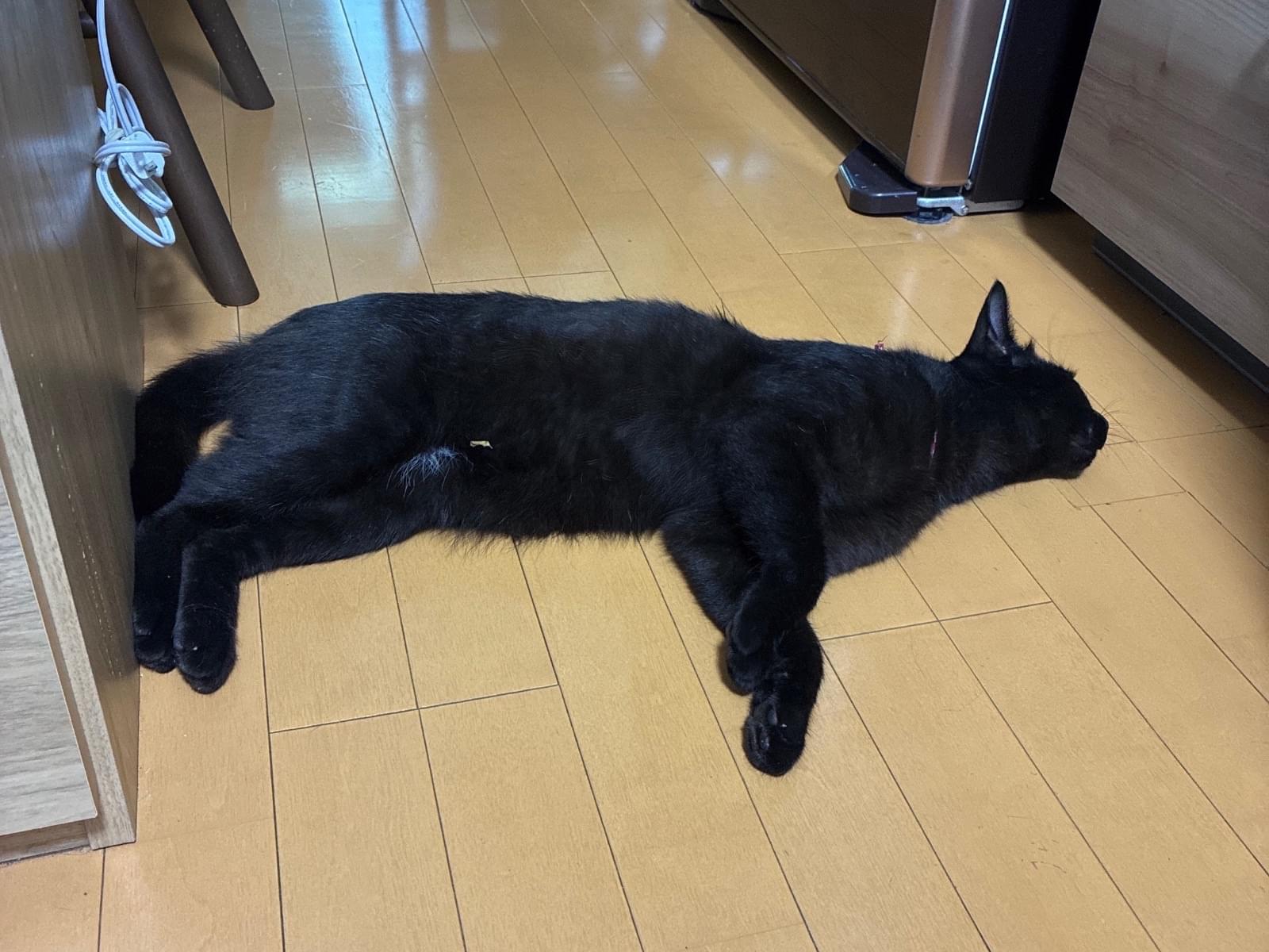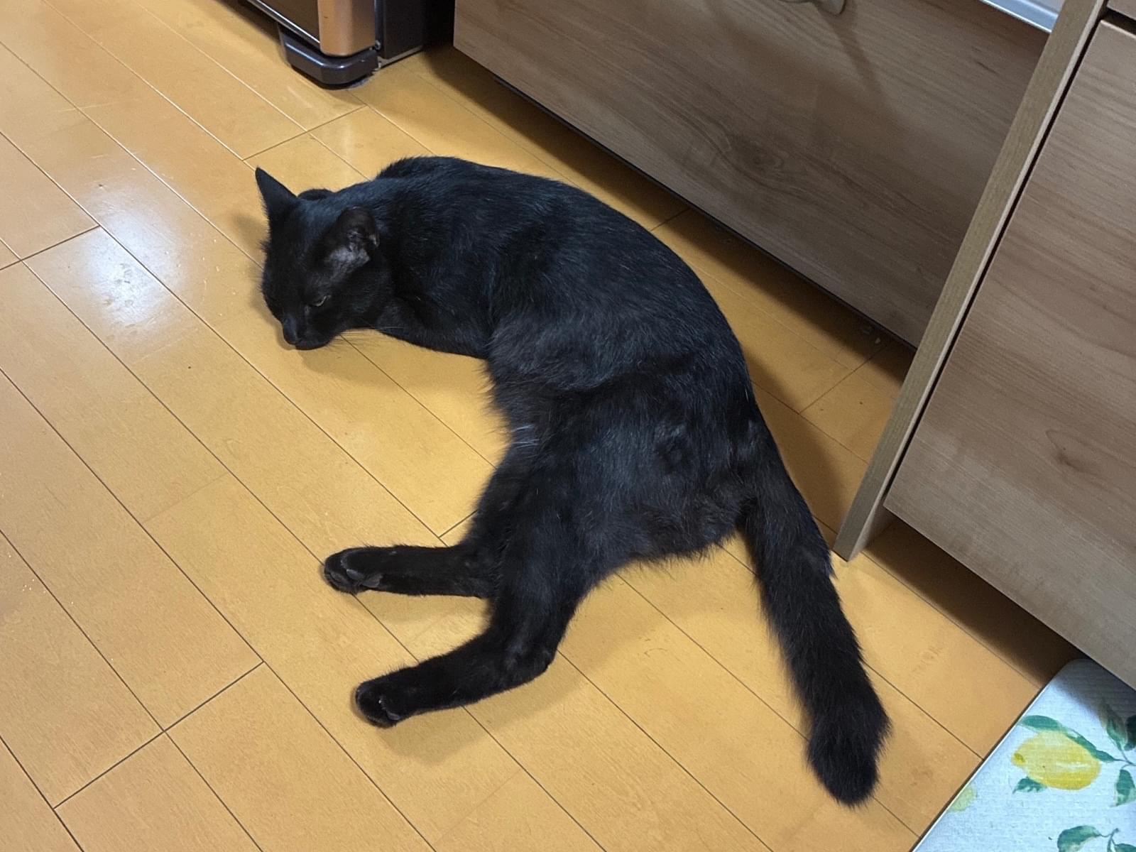 黒猫、オス、以前は赤い首輪あり、サクラカット、尻尾の先が少し曲がってる、先天性心臓疾患持ち