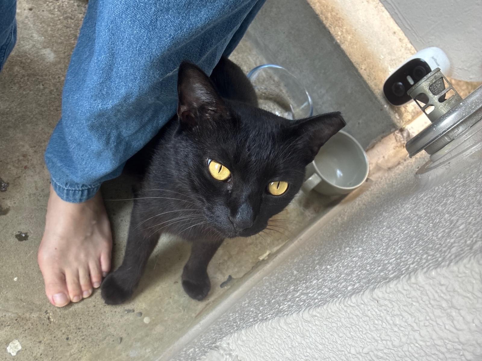 今年6月半ば、他の迷い猫を保護するさいに黒猫ちゃんもご飯を一緒に食べはじめ、
