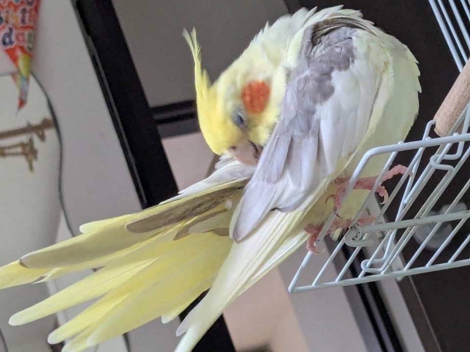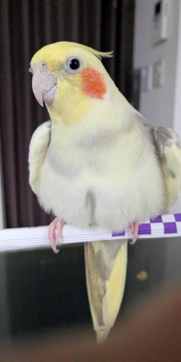 口笛調でよく喋るので、オスだと思います。(「きなこ」「かわいい」等)幸せなら手をたたこうを不恰好に口笛調で歌います。