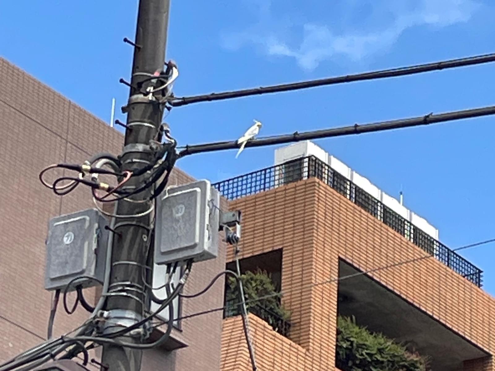 追記:8月16日(土)午前に墨田区向島辺りの電線に停まっていました。呼びかけに反応はしていましたが、なかなか降りてこれず、3時間ほど同じところにいた後どこかに行ってしまいました。近隣にいると思うので見かけましたら保護や情報をいただけますと幸いですm(__)m