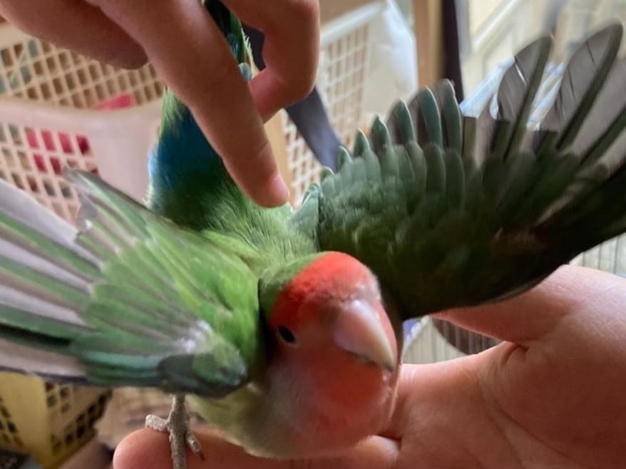 先程、鳥かごを掃除しようとした際、コザクラインコを逃がしてしまいました。特徴は鮮やかなオレンジ色の顔に黄緑色の羽、青いしっぽをしています。