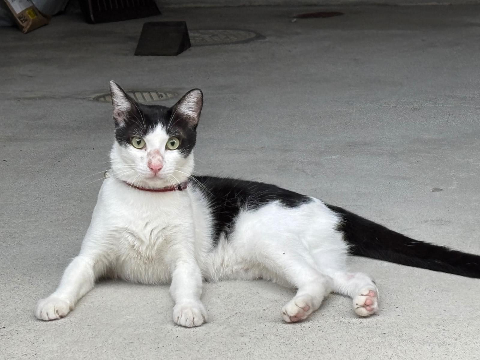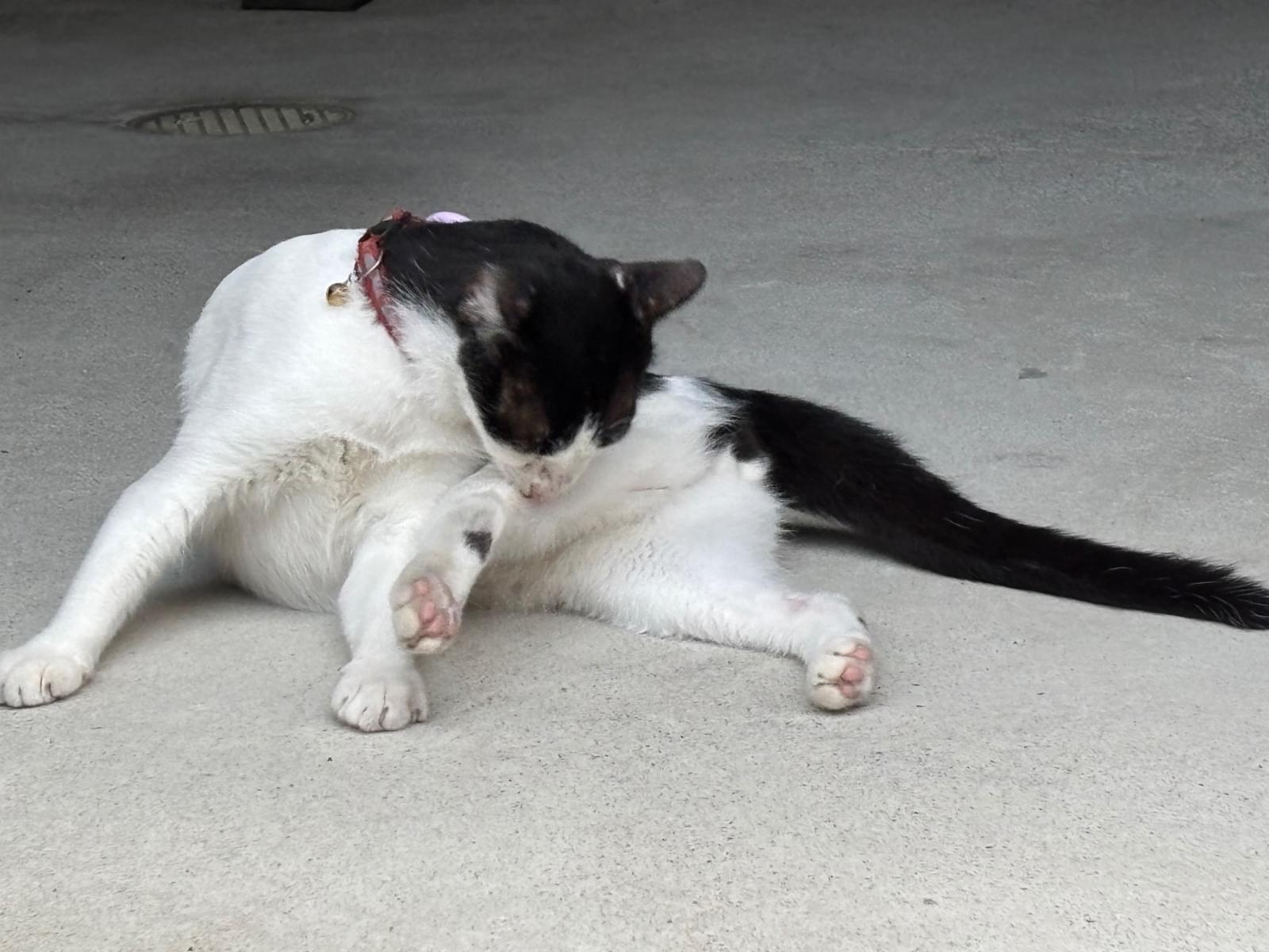 2025年4月26日に初めてハチワレの猫を見かけました。8月18日、現在4月に見た頃より痩せています。