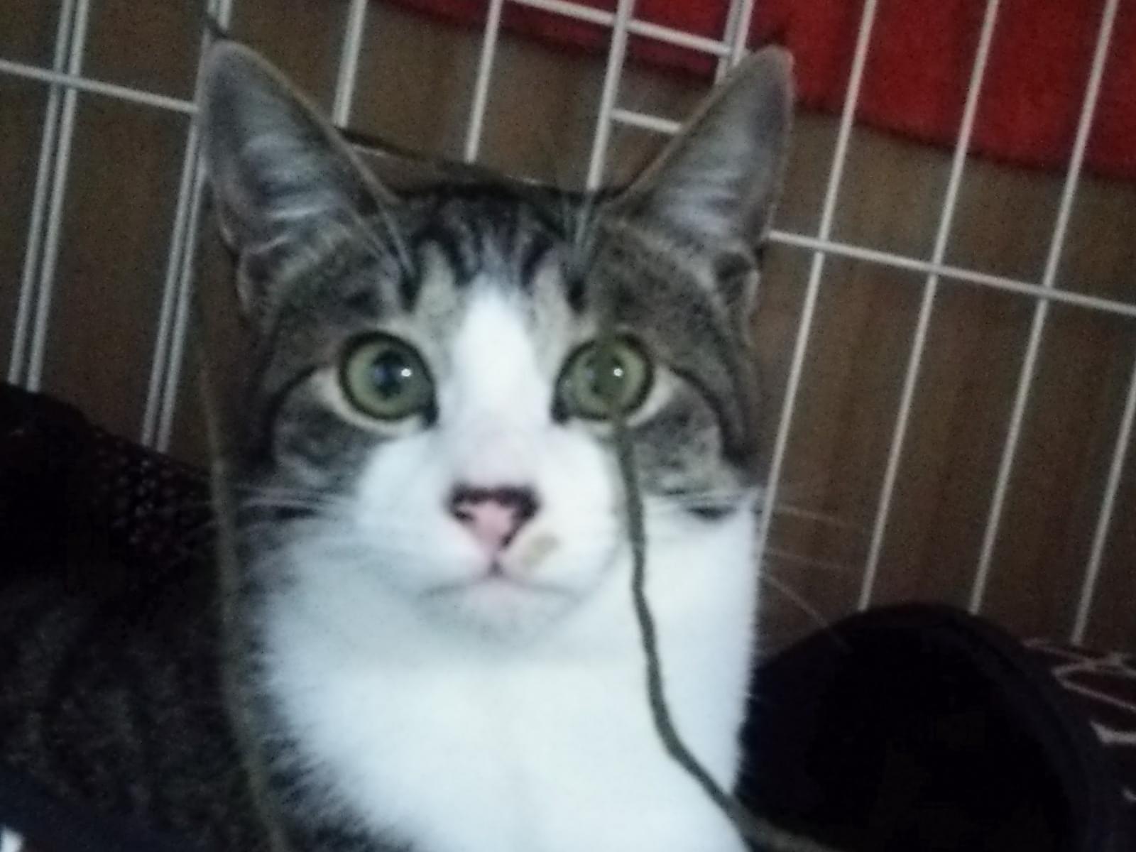 目の色は緑で、薄いグレーの首輪を着けていましたが外れているかもしれません。