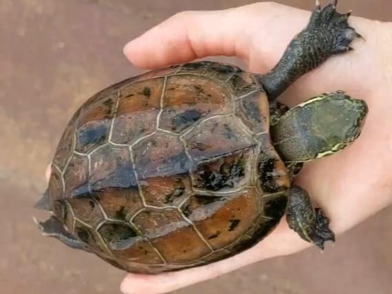 15センチ位のクサガメです。左手の人差し指が、親指方向に曲がっています。15年ほど飼っていたので居なくなりとても悲しいです。見かけた方はご連絡お願いいたします。