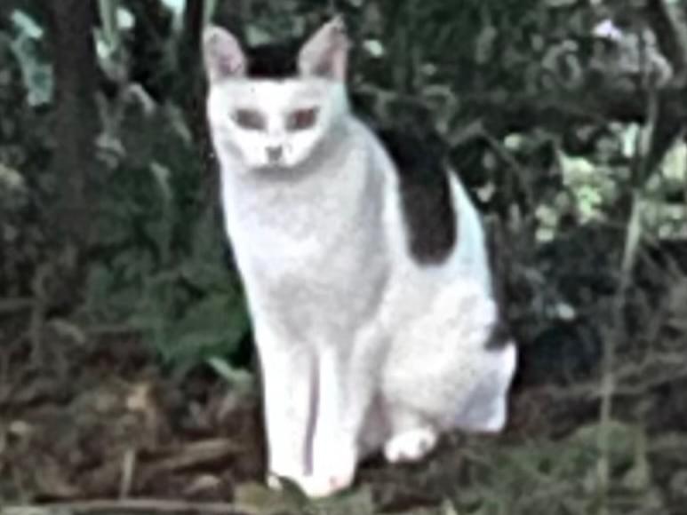 黒白、おかっぱあたまの猫。首輪耳カットなし。人には慣れているようす。数日つづけて同じ場所にいた。