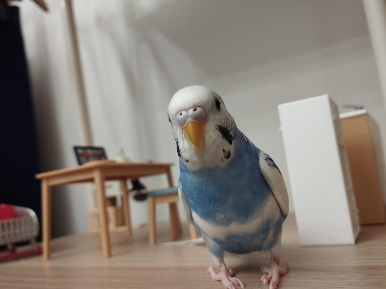 お腹が雲のような形なのが特徴で手乗りです逃げ足が羽は切ってありますが短い距離なら飛べるくらいです。