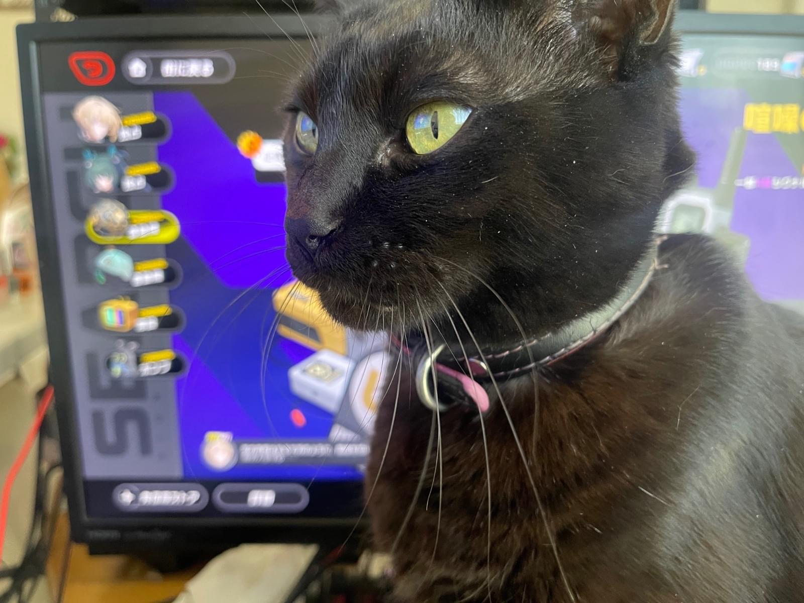 ・黒色、正面から見た左耳が少しカットされてる、黒い首輪をつけている、とても大きい