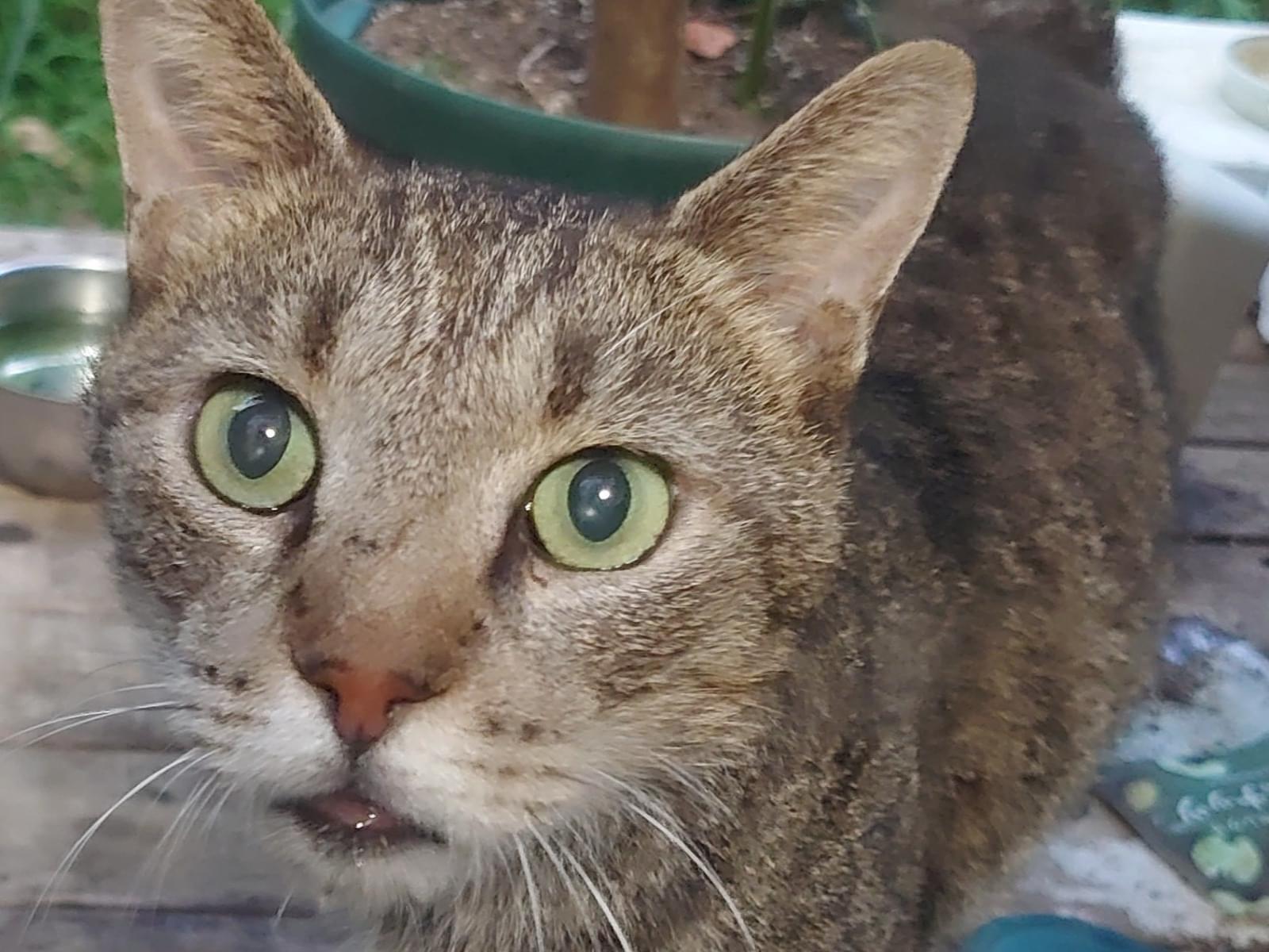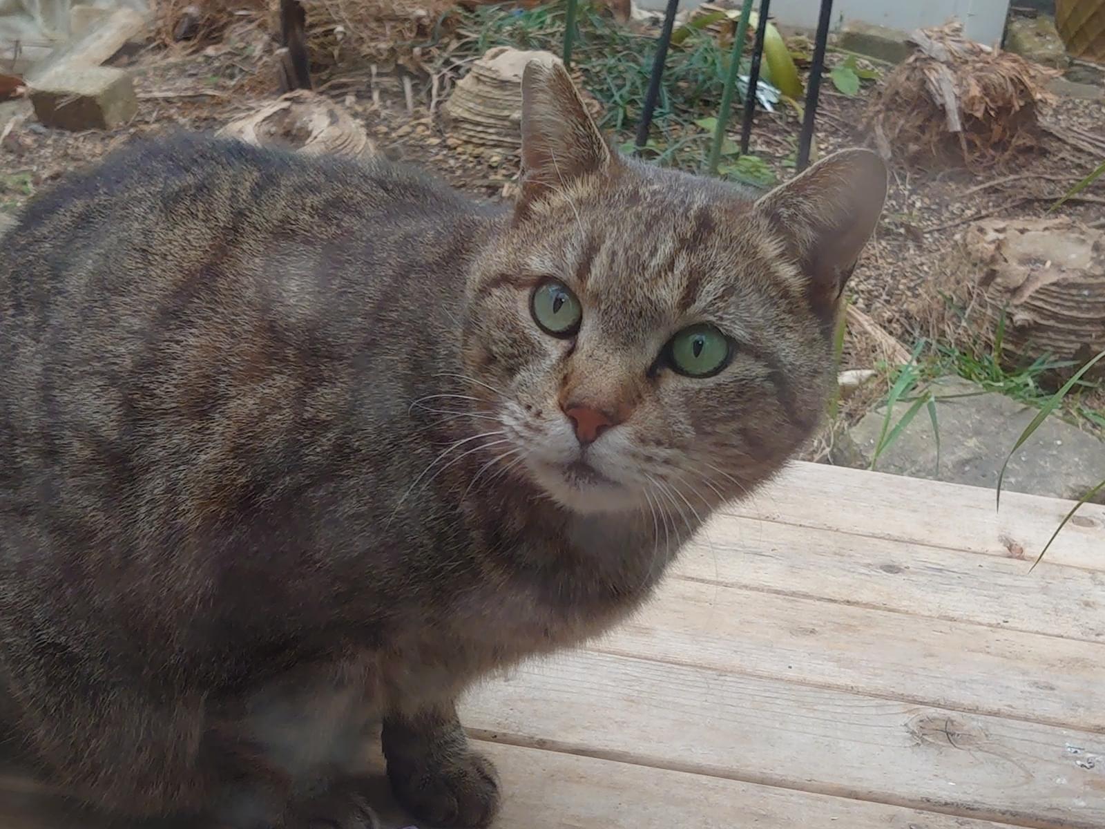 右耳が切れていて、しっぽは短め、鳴き声はけっこう高めです。