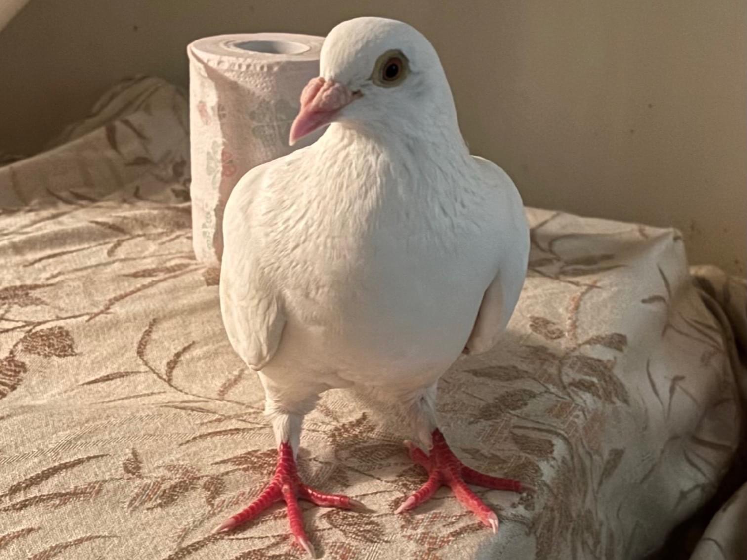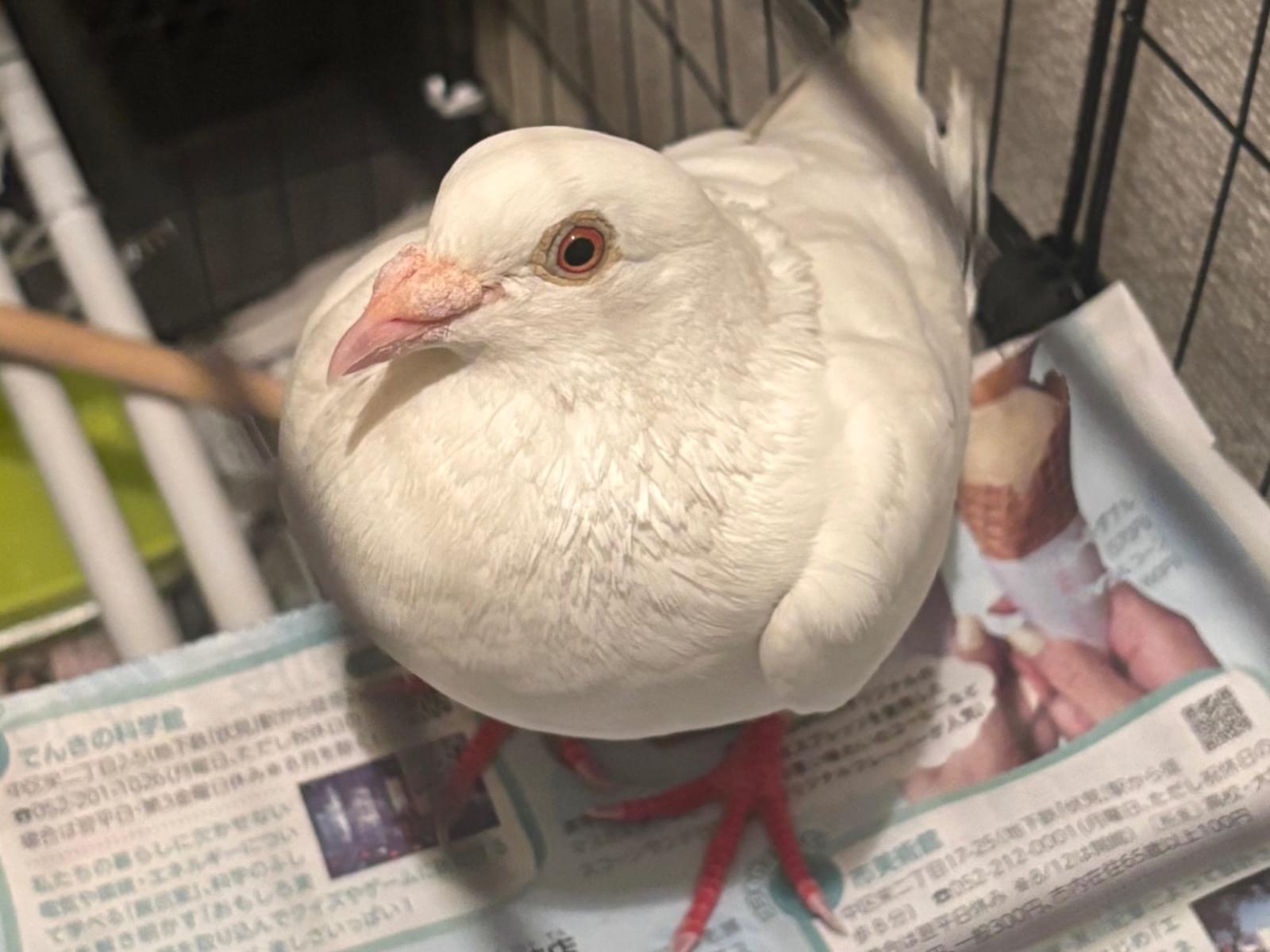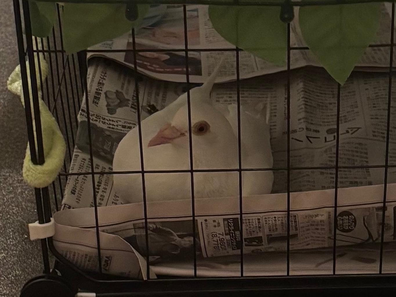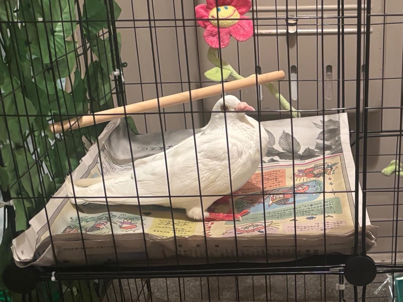銀鳩です、5日の昼頃ベランダにいました。性格は大人しく汚れが殆どなく毛並みも綺麗で、餌もパン屑などは食べず市販のエサしか食べない等から、誰かの飼鳥ではと確信しました。