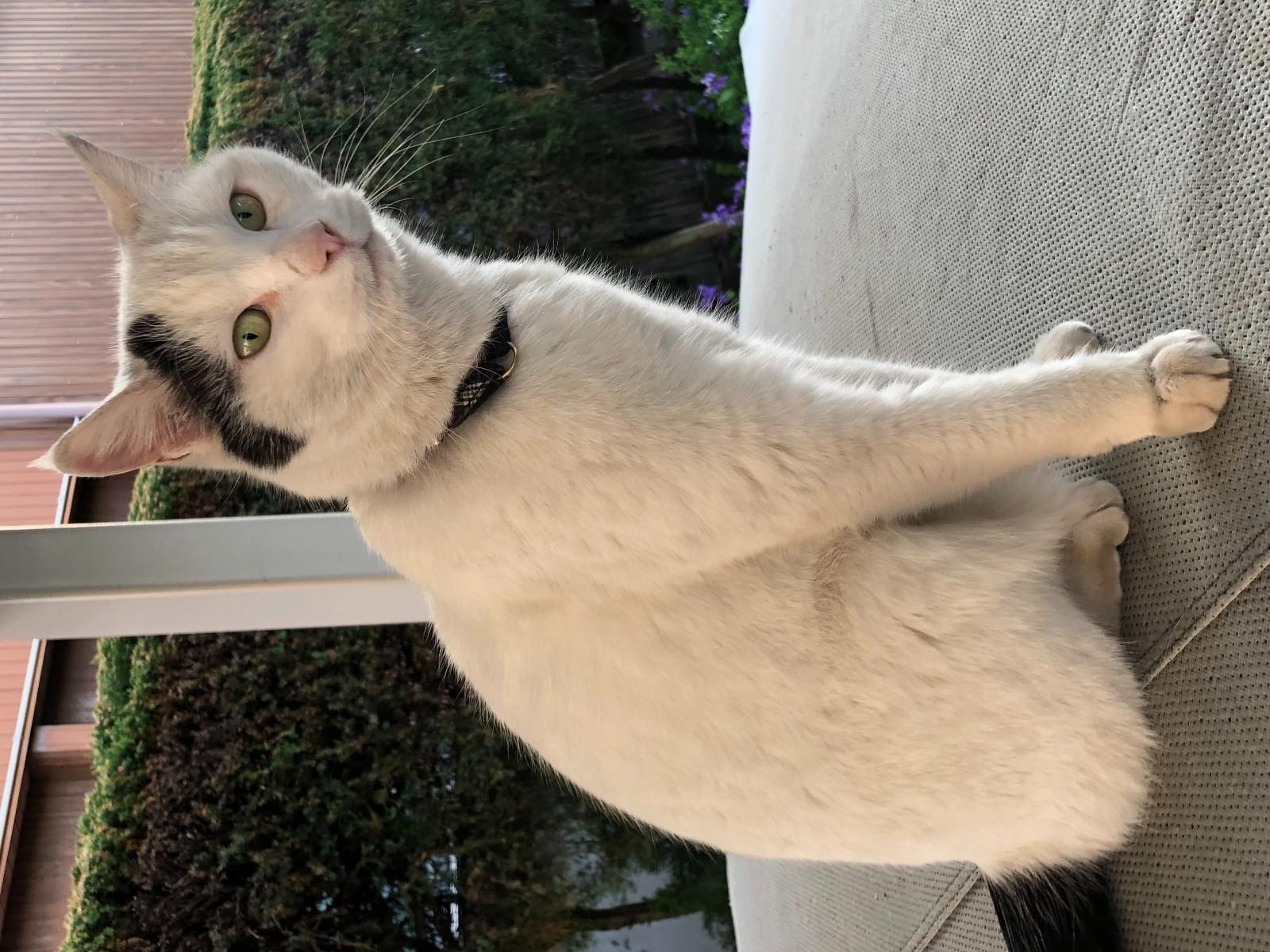 岐阜県各務原市で、全体的に白で、部分的に黒の日本猫が迷子です。
