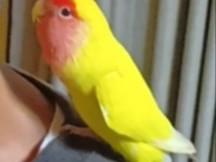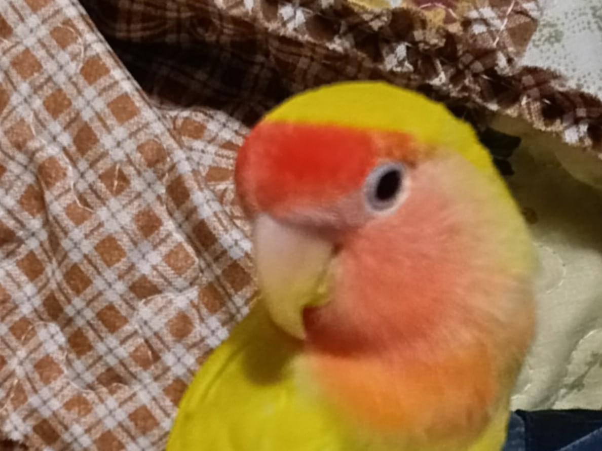 コザクラインコ、「ピーちゃん」と言うと「ピーちゃん」と応えます