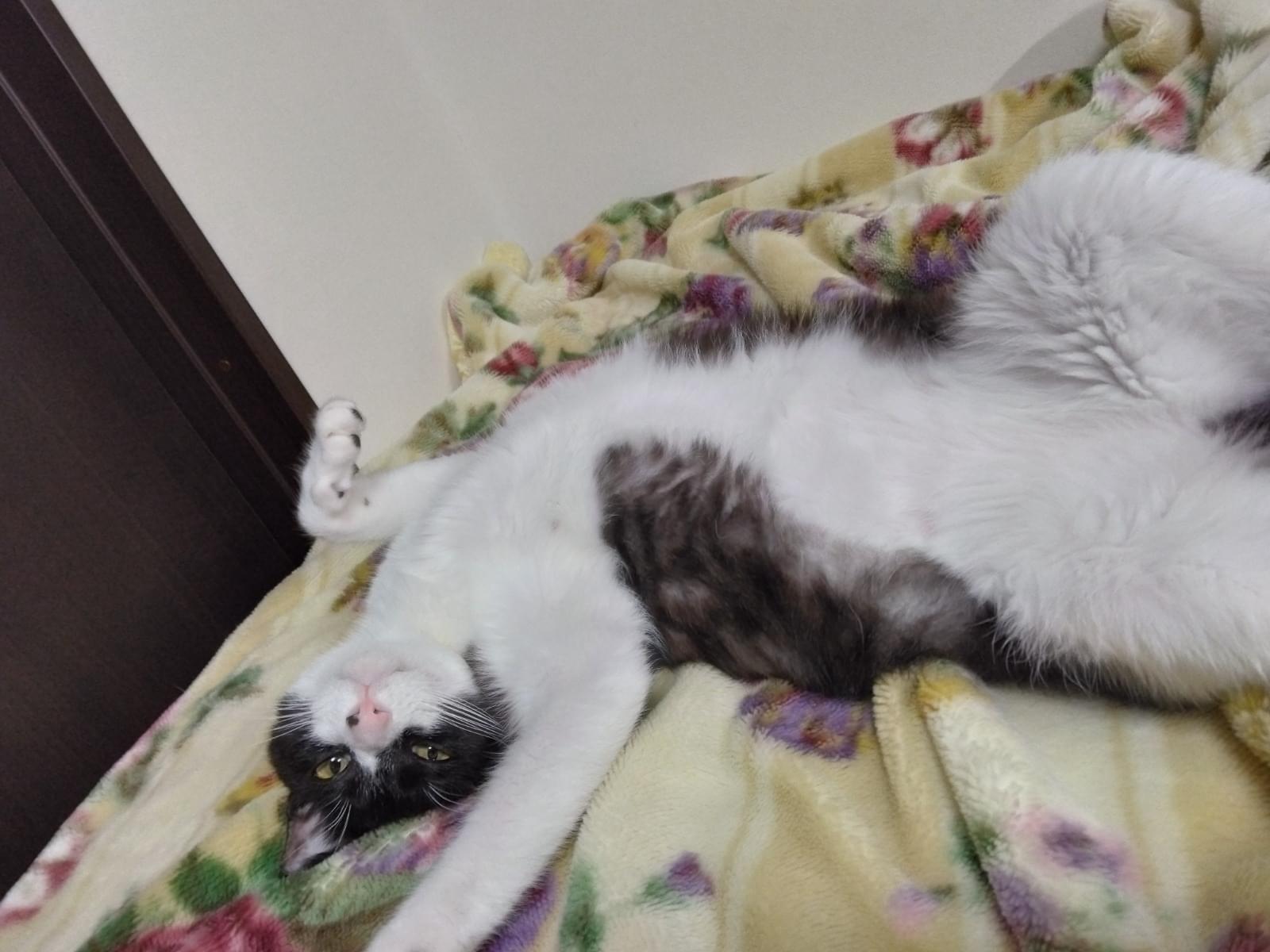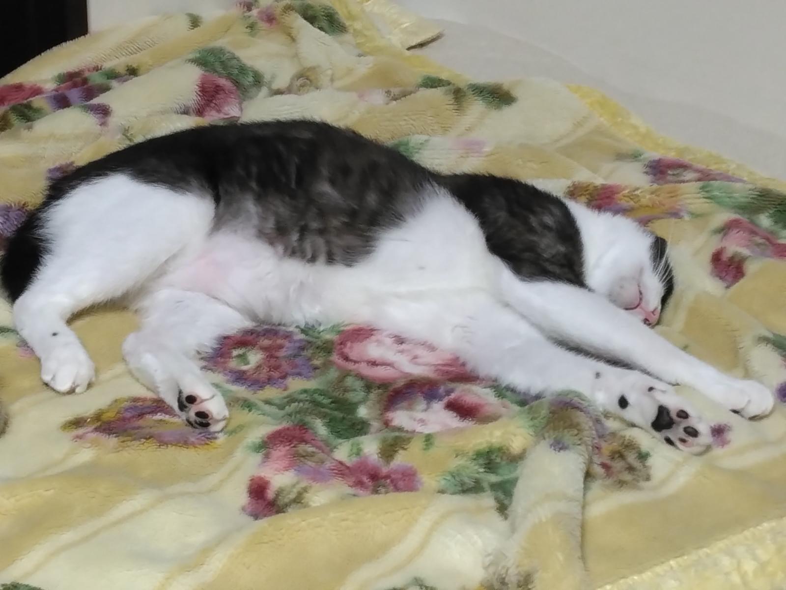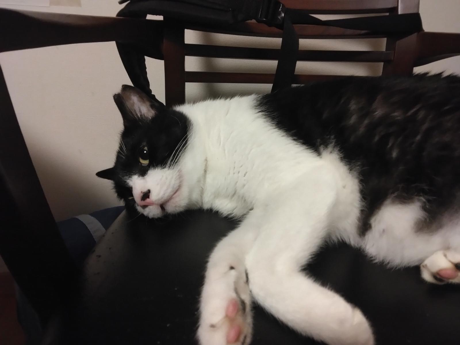 尻尾の短い黒白のハチワレ、脱走当時は太っていた
