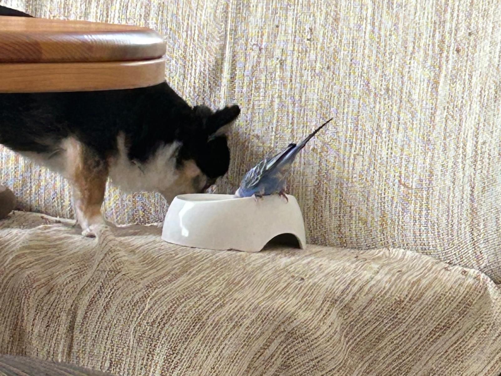 父が庭の手入れをしようとして肩に止まっているのに気付かず、外に出たところ逃げてしまいました。