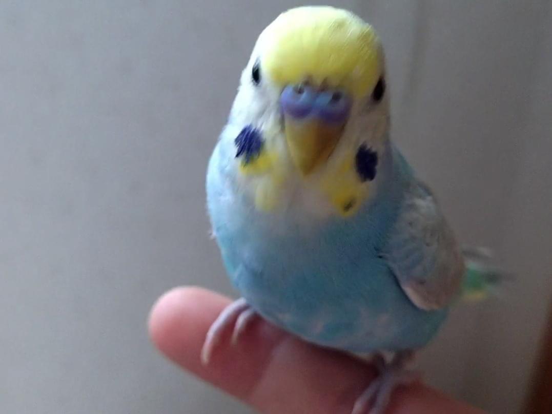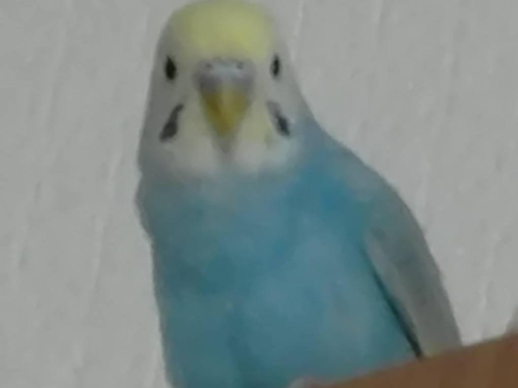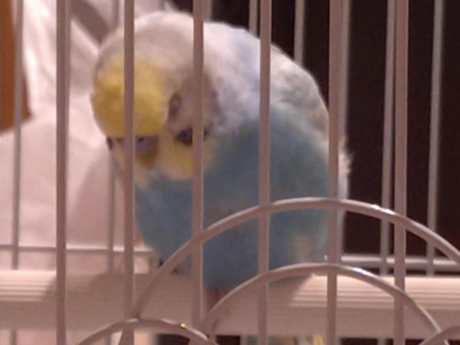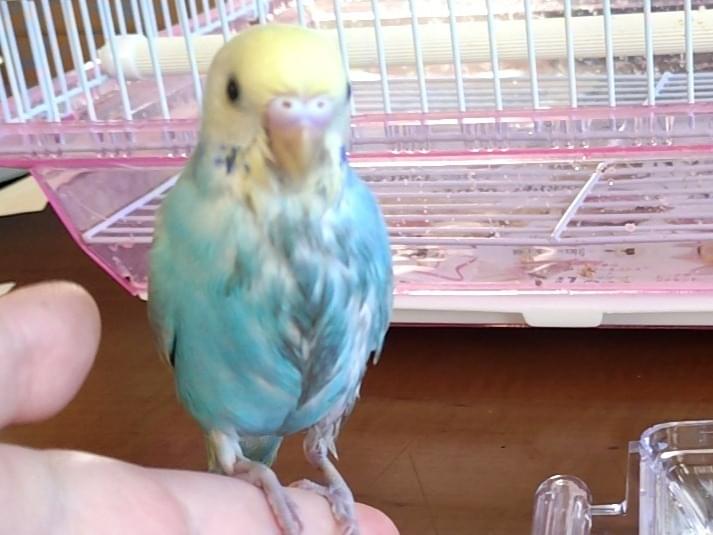 レインボーカラーの頭が黄色で体が水色のセキセイインコを探しています