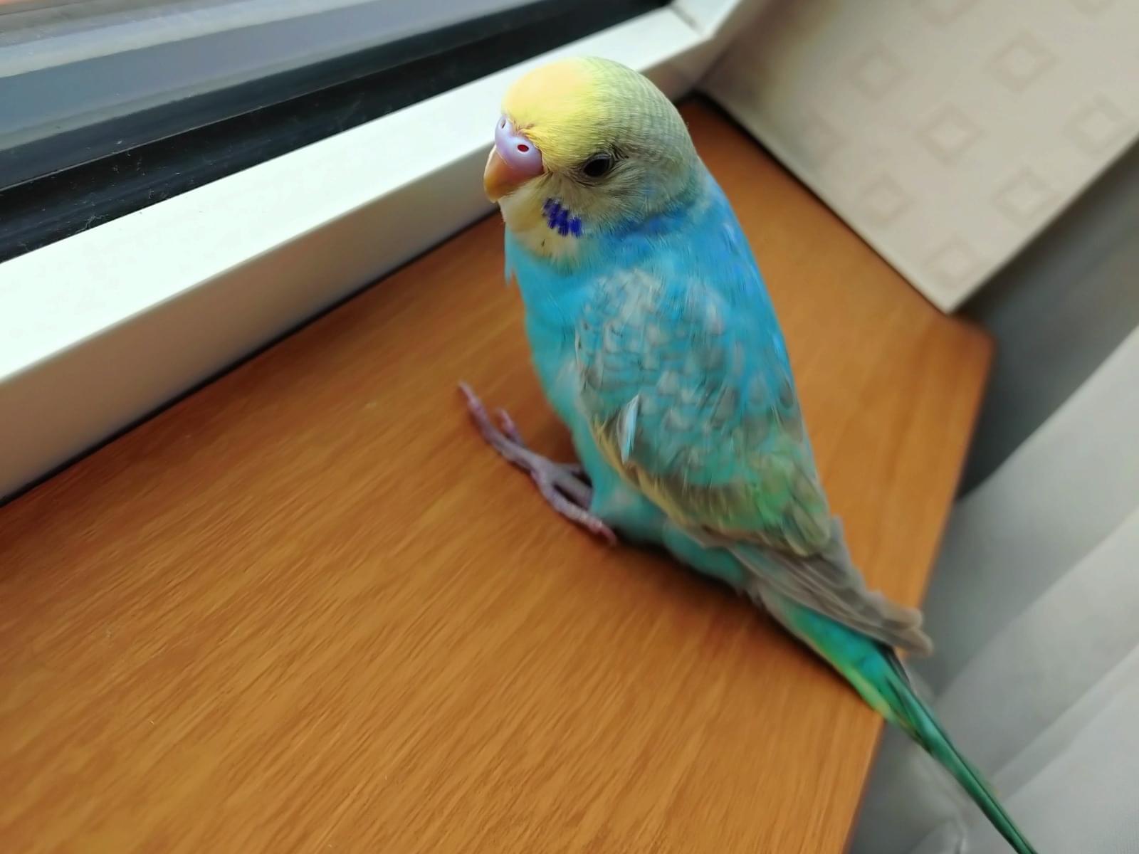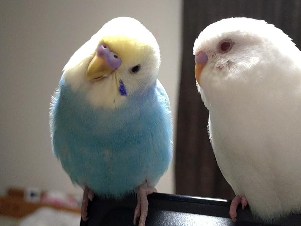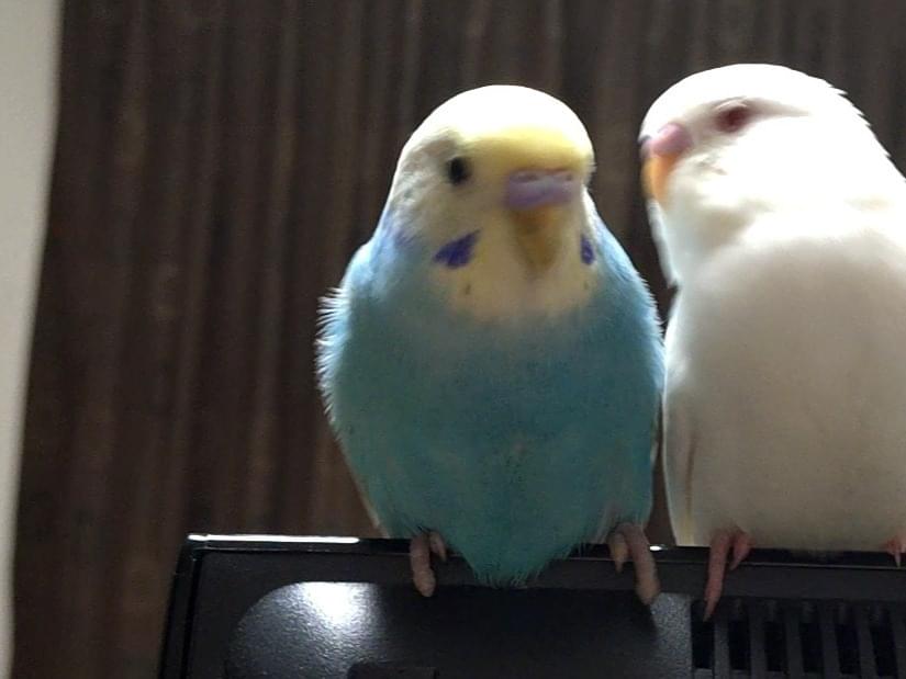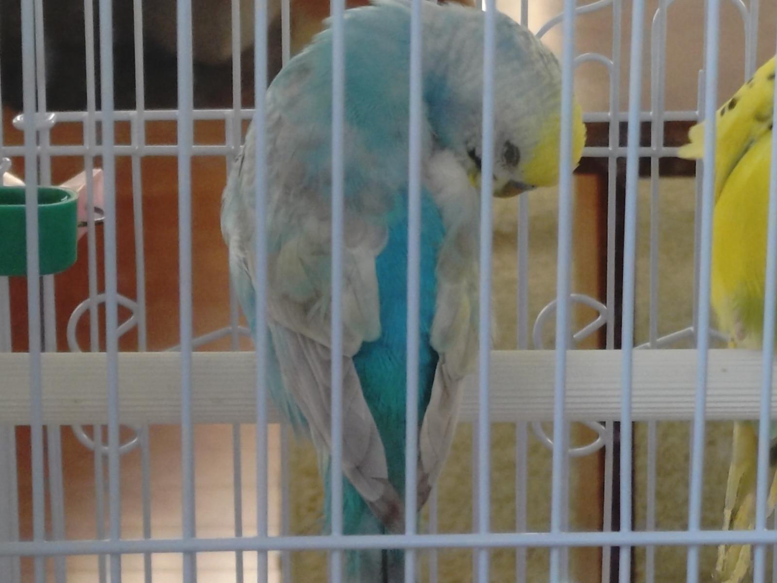 レインボーカラーの頭が黄色で体が水色のセキセイインコを探しています