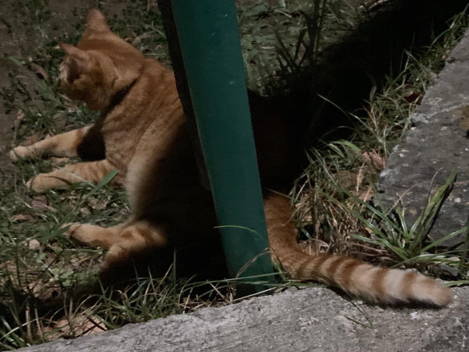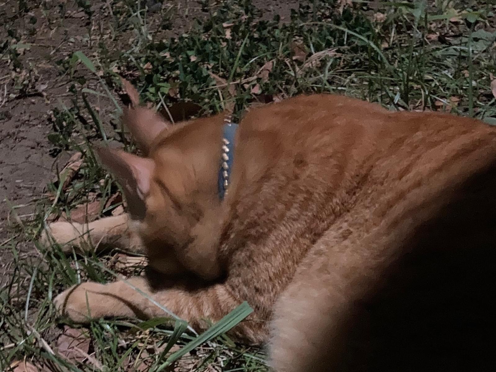 ・青く、スナップボタンの凸側のような装飾がついた首輪をしていました。