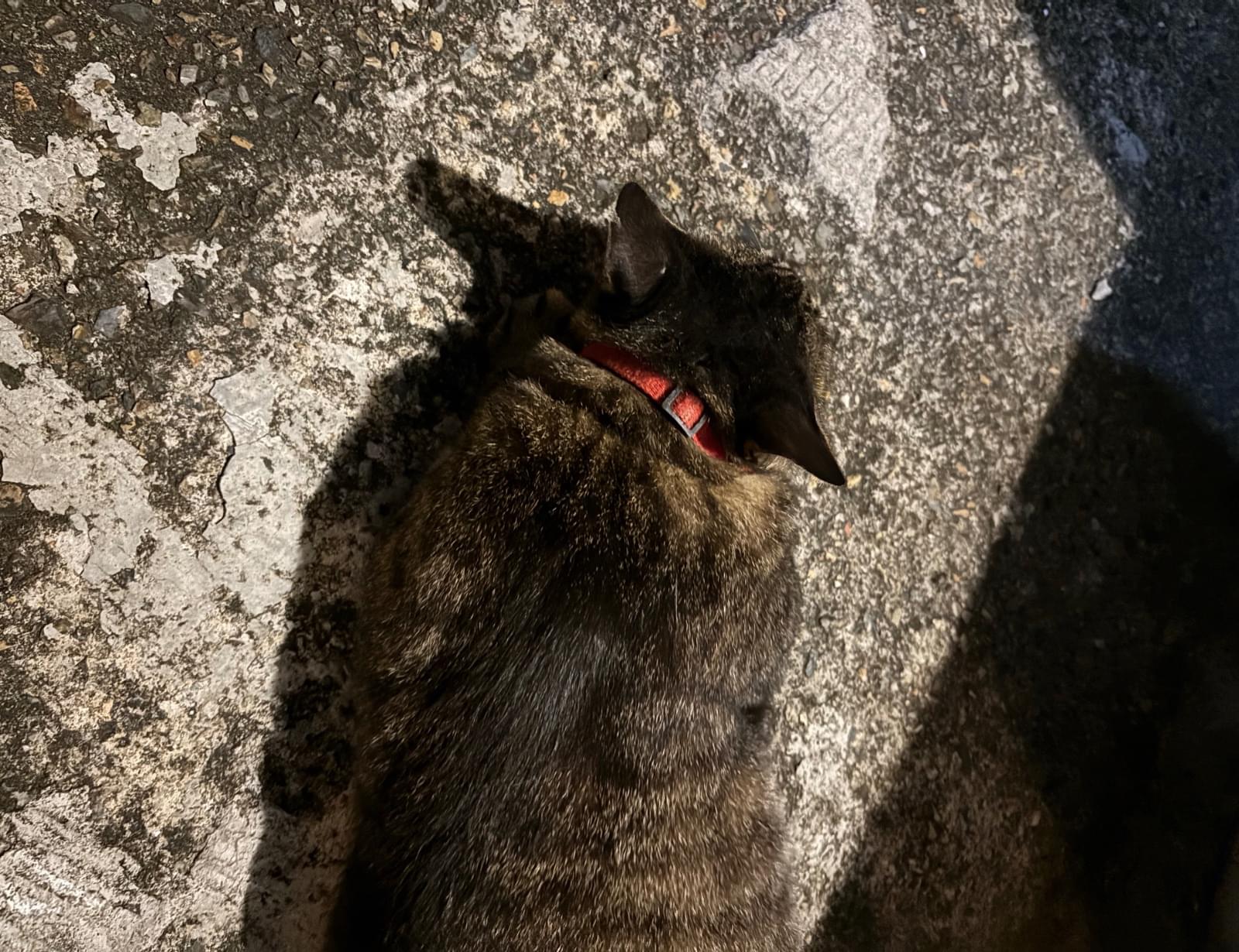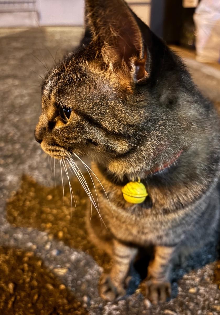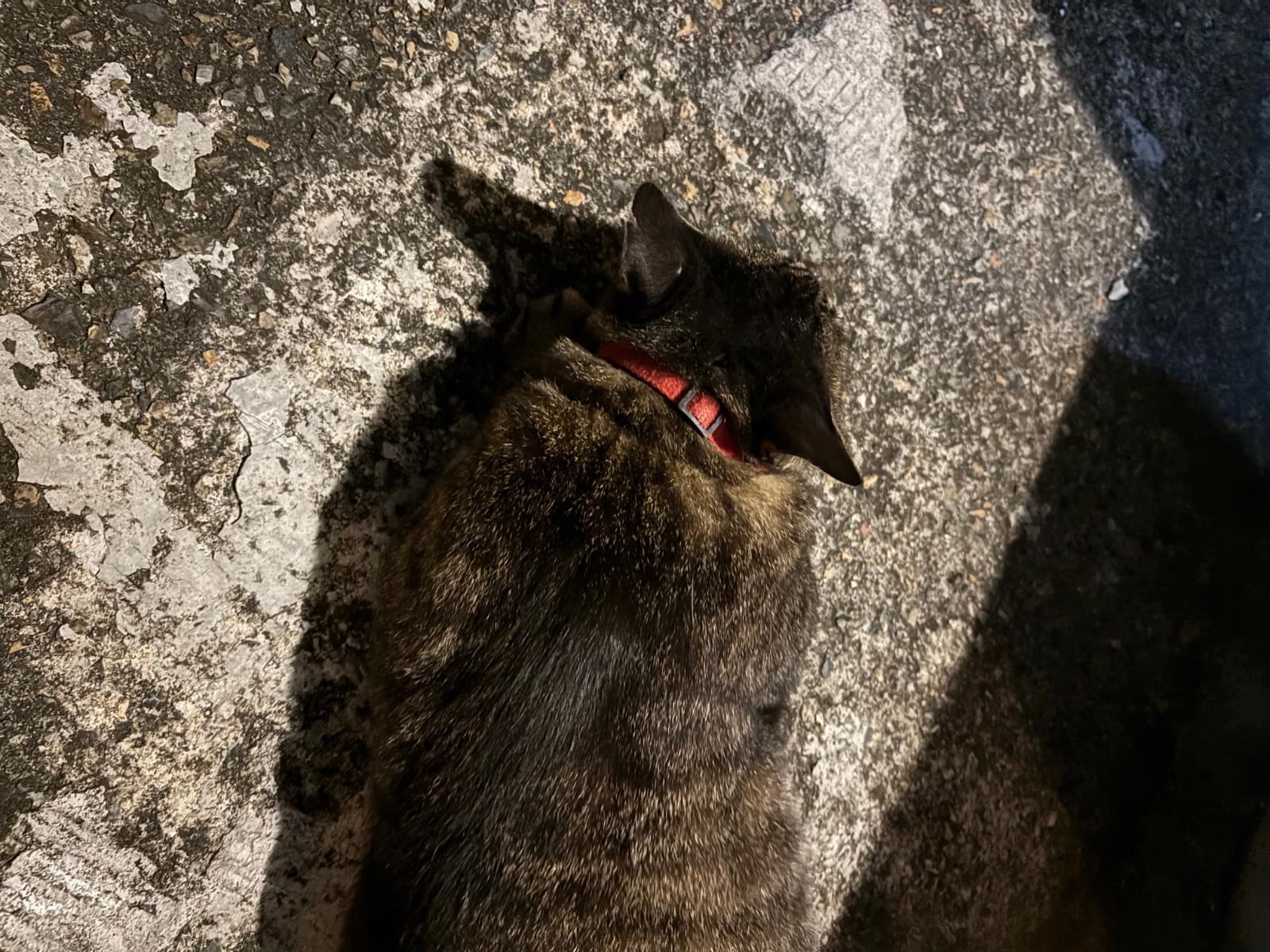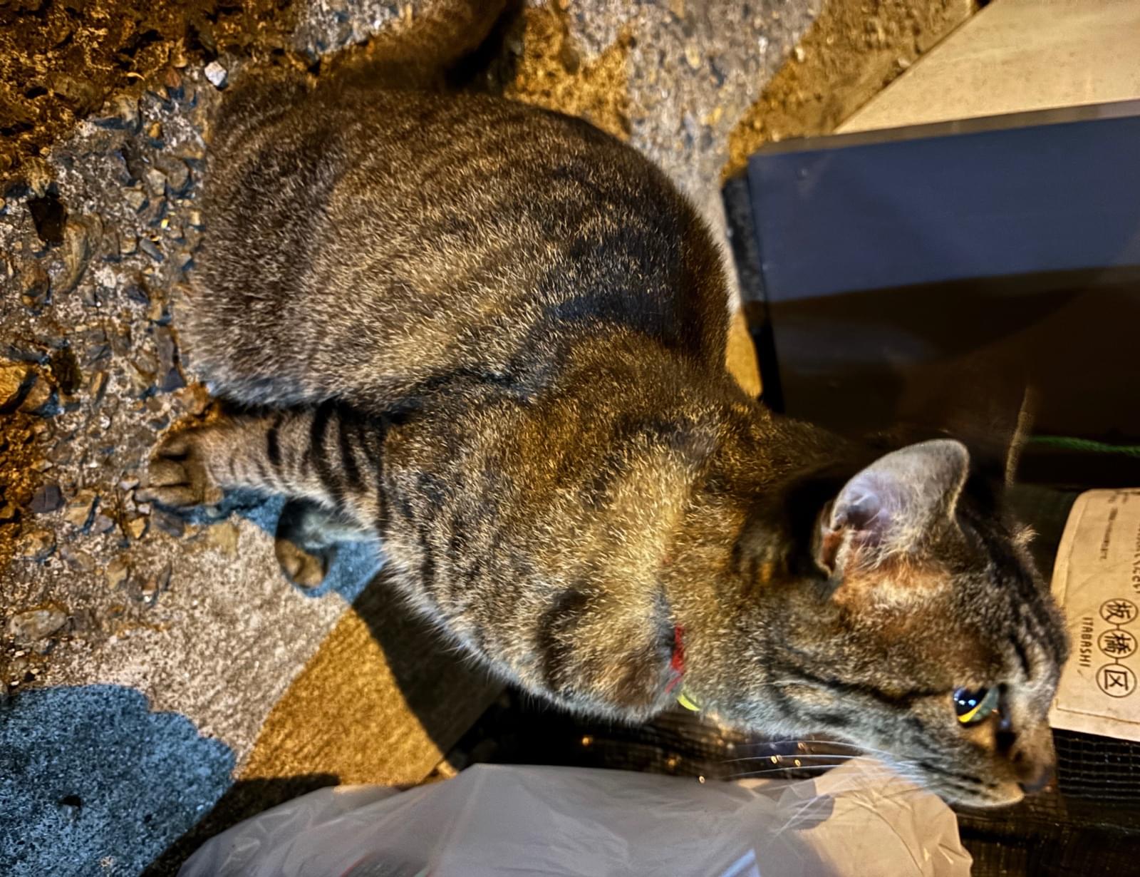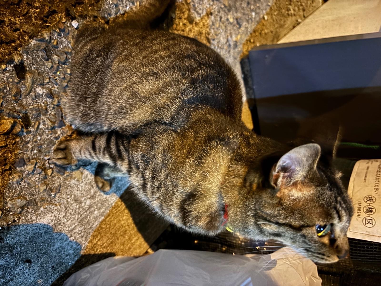 夜中にすごく人懐こいキジトラを目撃しました。人間に寄ってきますし撫でさせてくれます。お家の子かなと思いこちらに投稿しました。左耳が小さく切れていたのでもしかしたらカットしてあるのかもしれません。