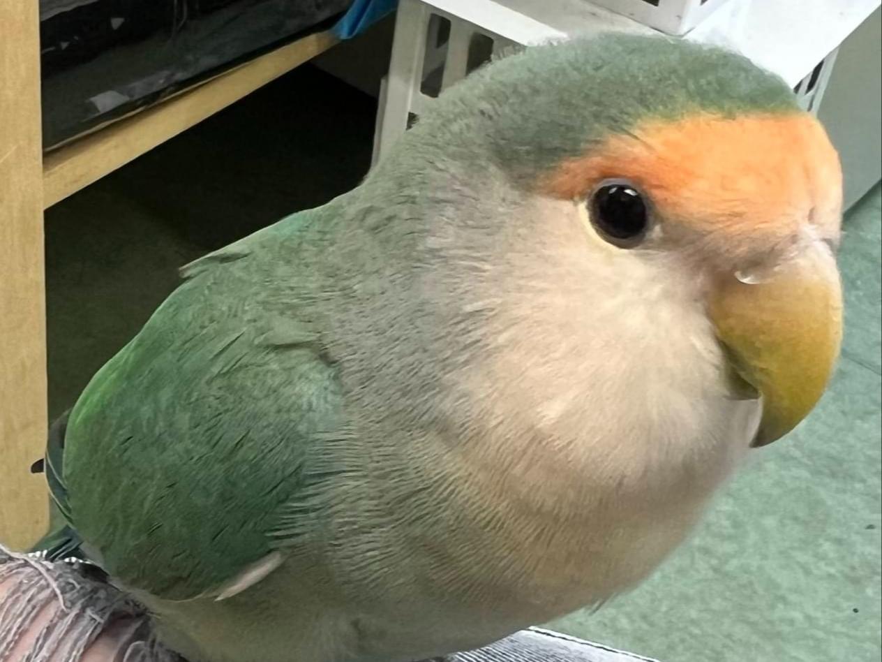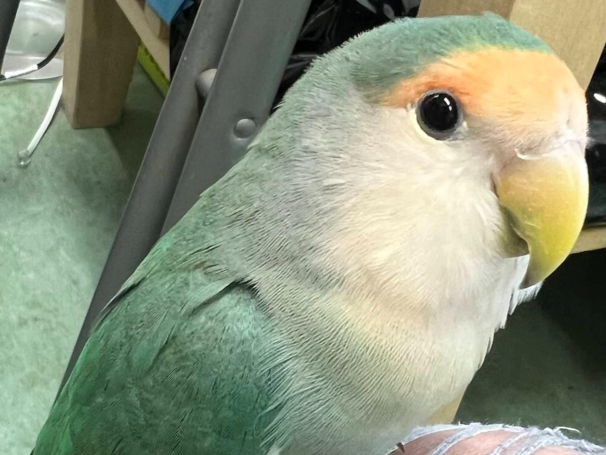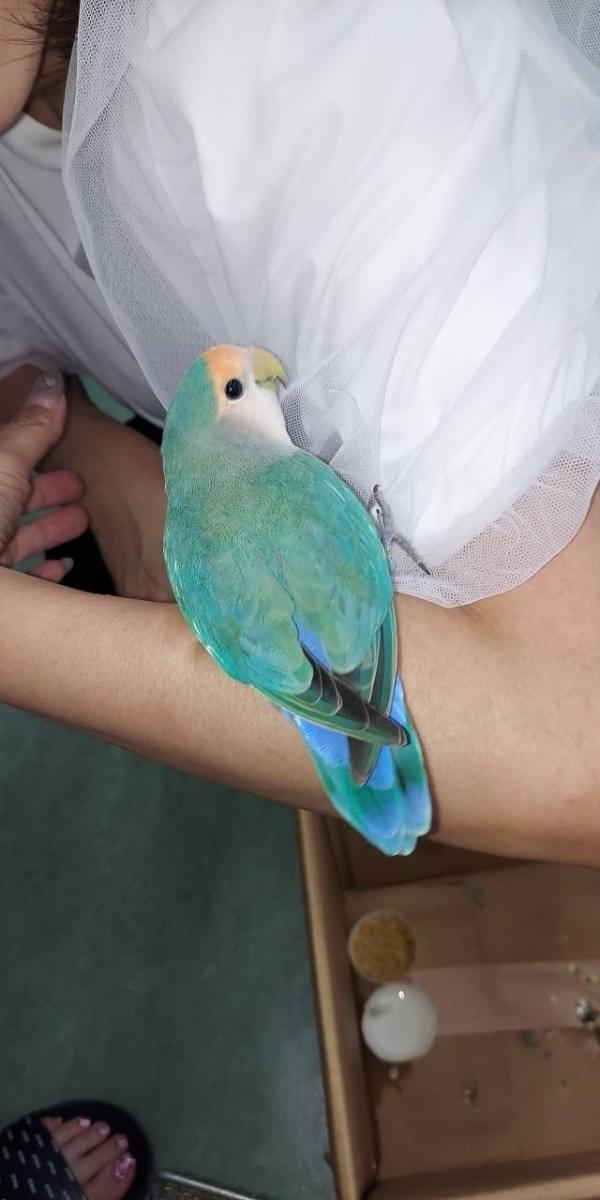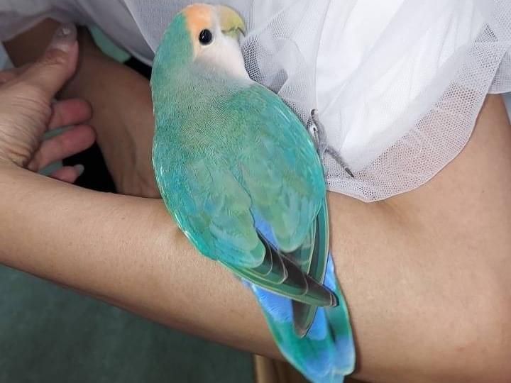 とても人懐こく、頭をなでることもできます。尾の部分はきれいなブルーです。保護した際、羽根もきれいで元気な状態でした。
