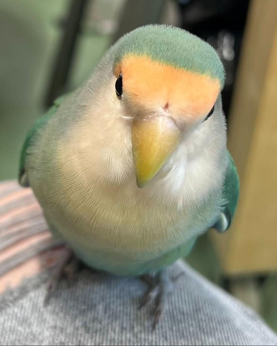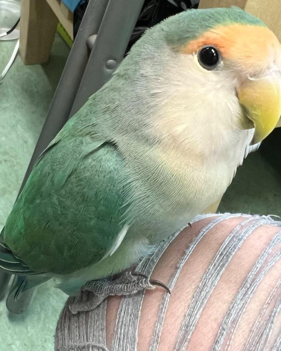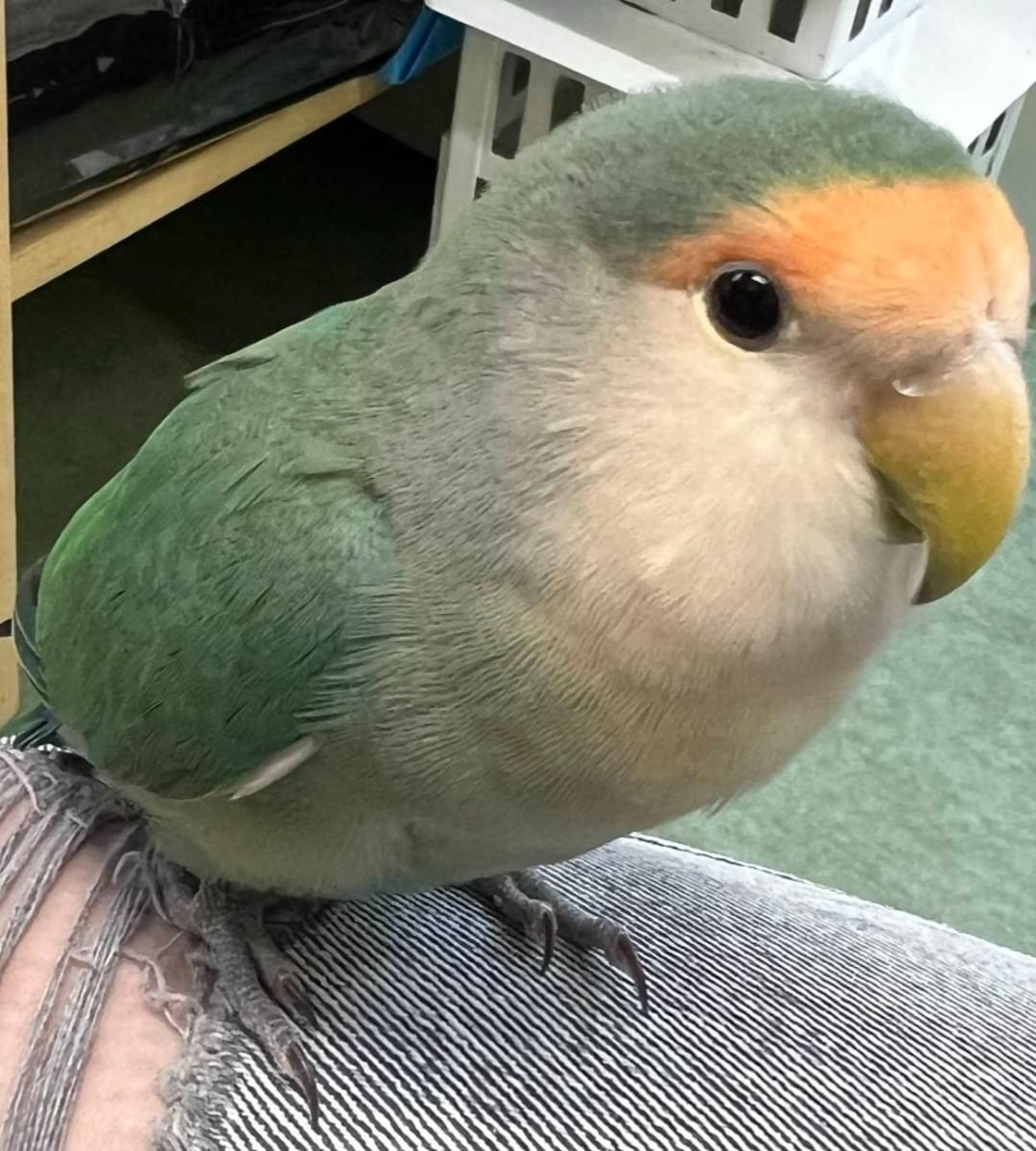 とても人懐こく、頭をなでることもできます。尾の部分はきれいなブルーです。保護した際、羽根もきれいで元気な状態でした。