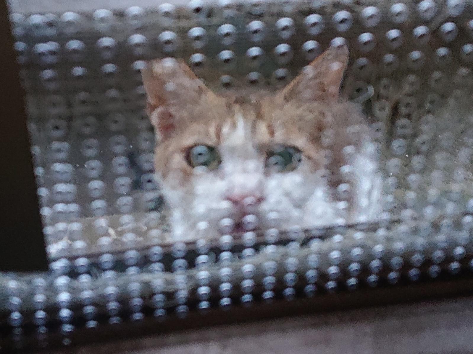 ご近所の外飼いちゃんがうろついているだけなのかもしれませんが、もしも迷い子であれば飼い主さんに伝わりますように…。
