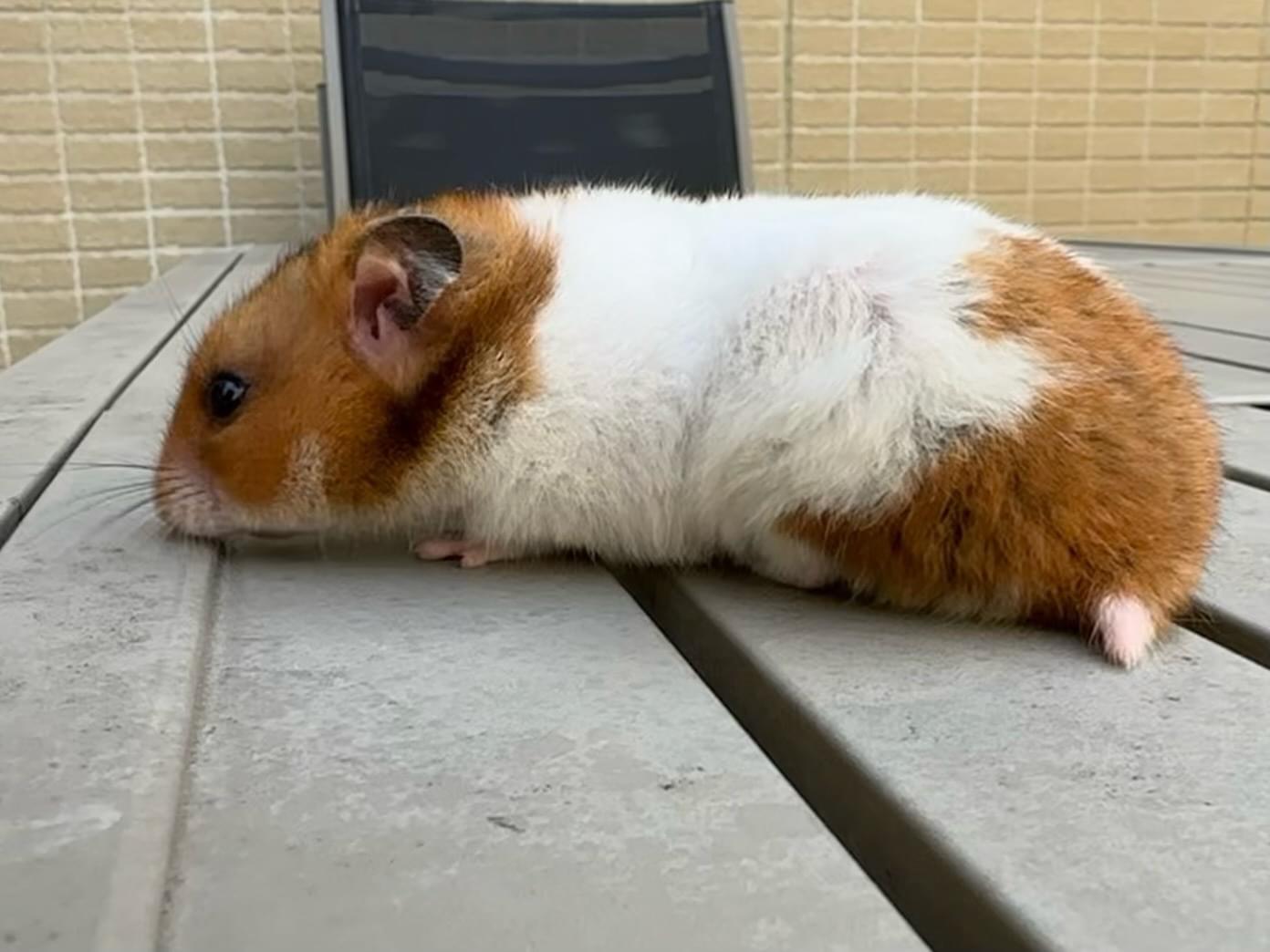 体長15センチ程度。茶色と白のツートンカラー。頭とお尻が茶色、背中はまっ白で背中に茶色のシミはありません。人なつっこく、滅多に人をかみません。メスです。9月9日火曜日の夜8時ごろに家から外に脱走したようです。
