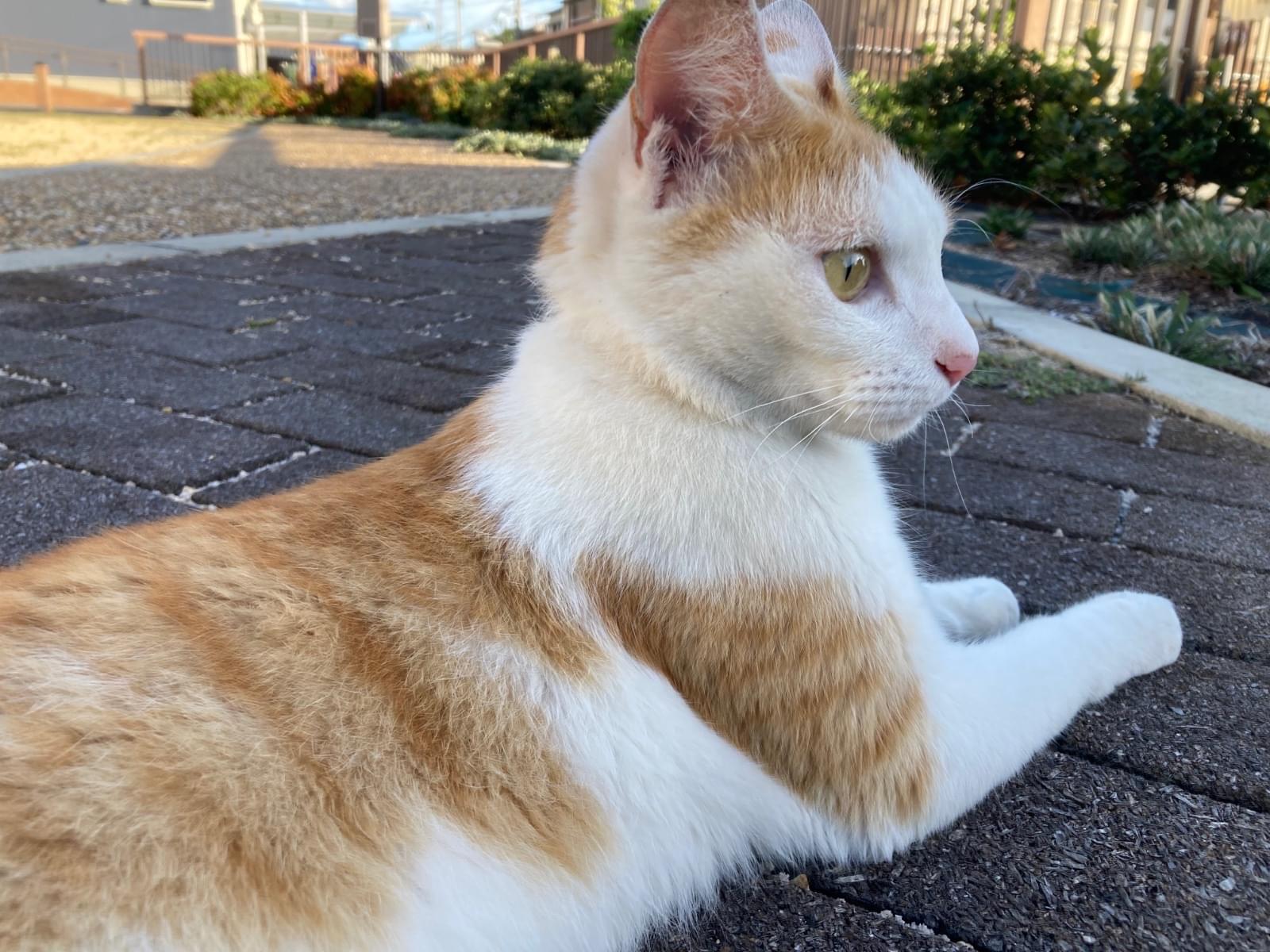 白ベースの茶トラ模様が耳や背中に入っています。オス去勢済みです。首輪耳カットなしです。性格は臆病で優しいです。人懐っこいほうです。庭猫ですが、9日から帰ってきていません。