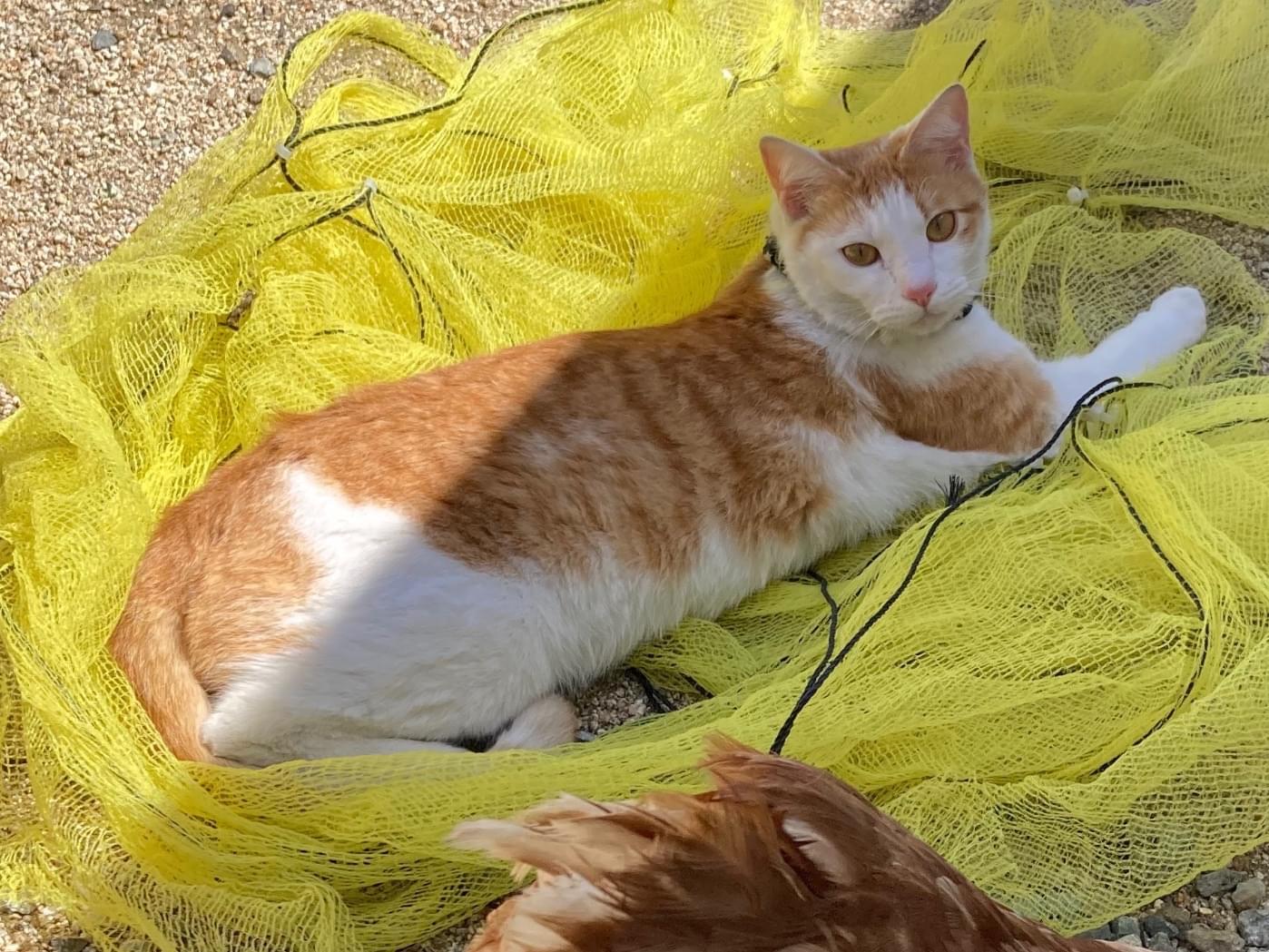 白に茶トラ、首輪耳カットなし、男の子、人懐っこい