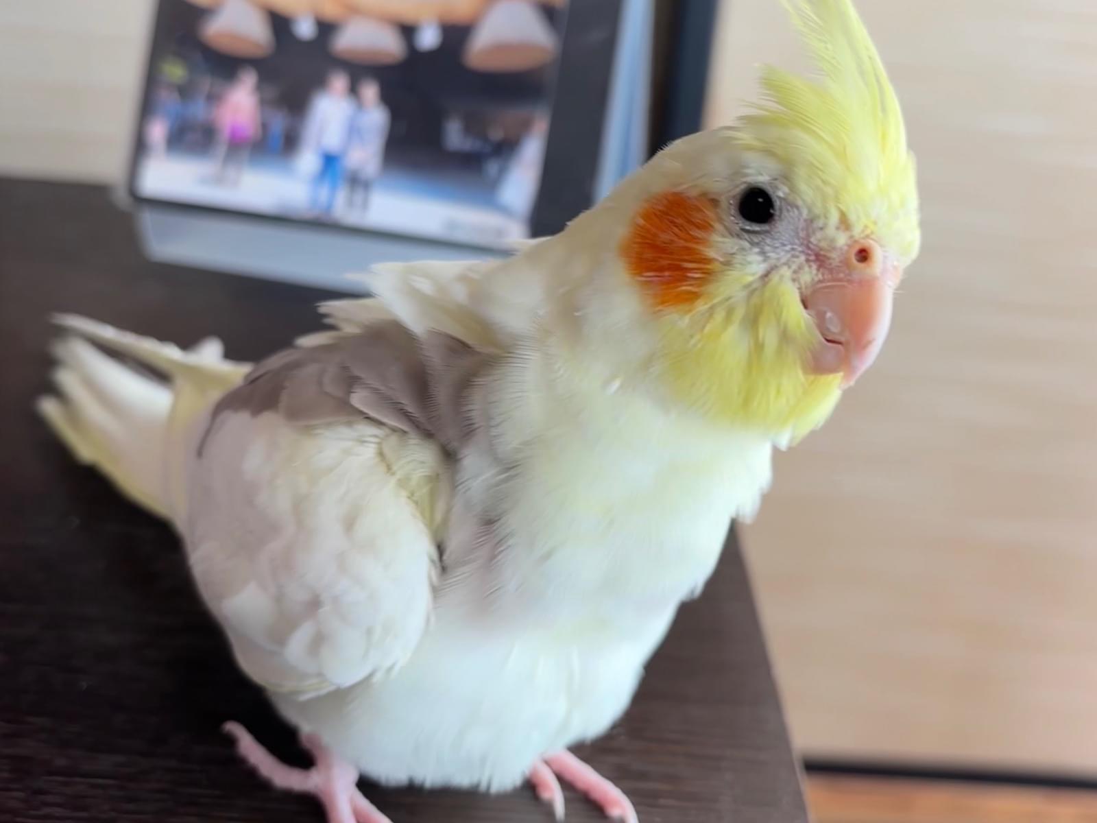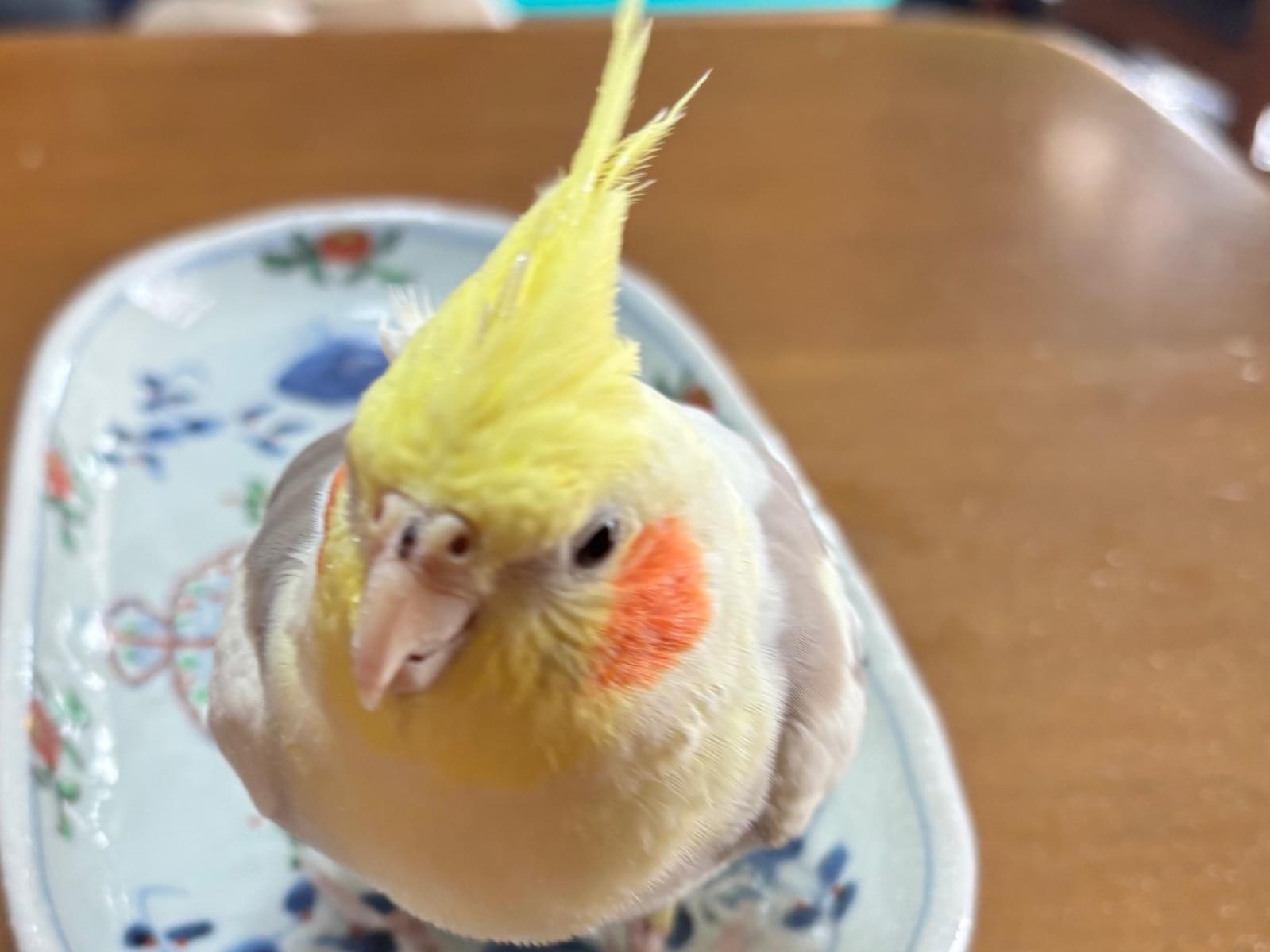 活発な子で、お家の中を飛び回っています。勢いで外に羽ばたいてしまいました。 手乗りではありませんが、人の肩に乗ってきます。羽を伸ばすと30センチくらいあります。