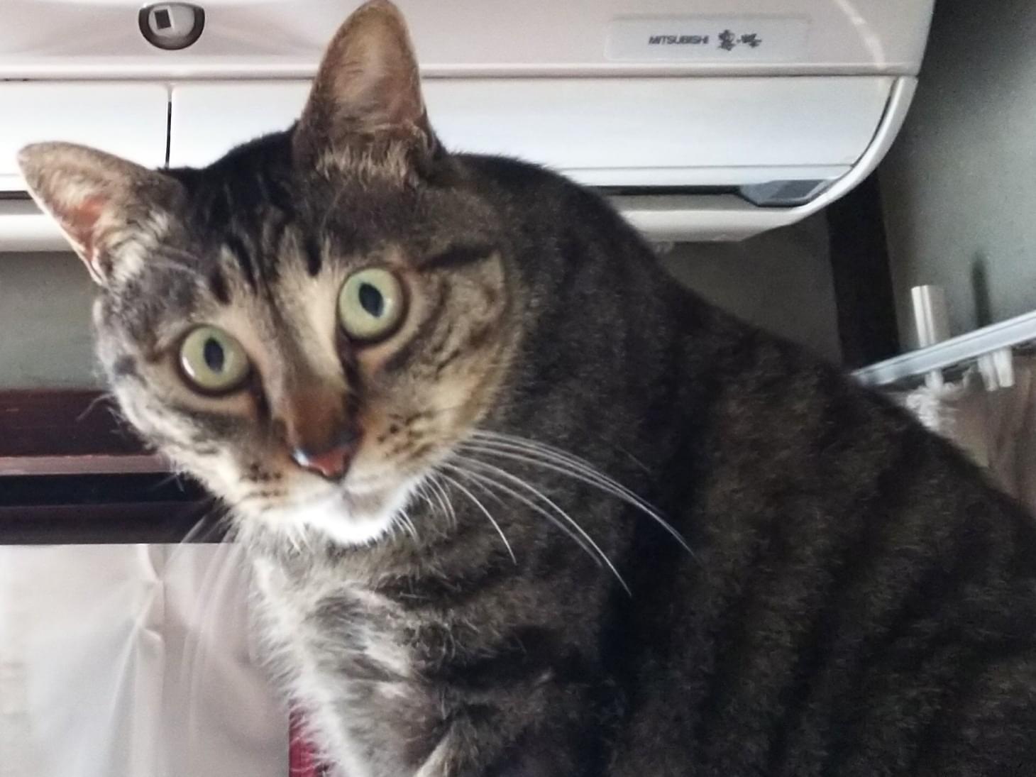 灰色と黒色のキジトラ、鍵しっぽの男の子を探しています!