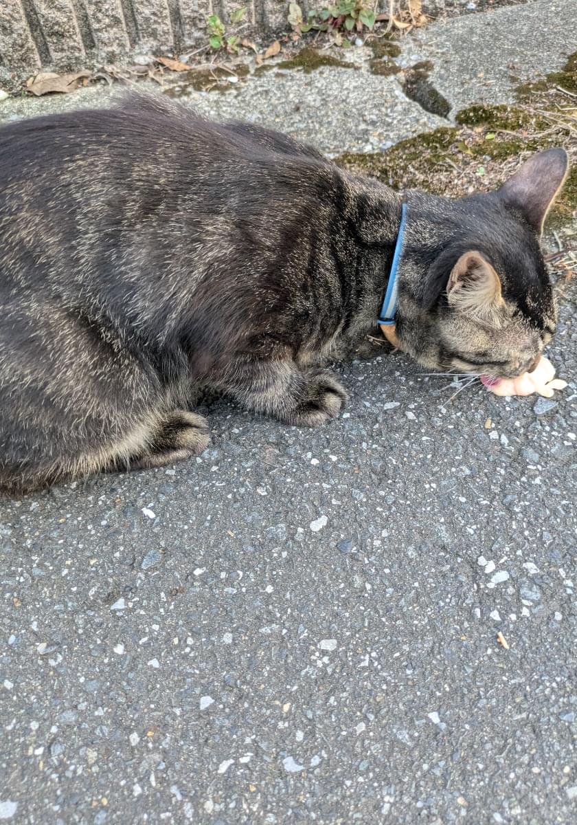 9月16日夕方5時頃に草加市青柳で水色と白の首輪をした濃いめのキジトラの猫ちゃんを見かけました。