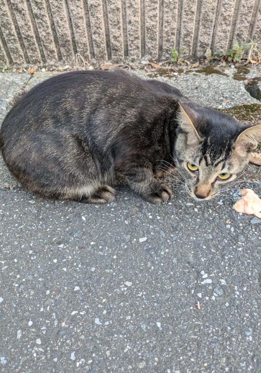 やせ細って、ヨロヨロと歩いていました。人の事は怖がりませんでした。もしかしたら、探している方がいるかもしれないと思い投稿します。
