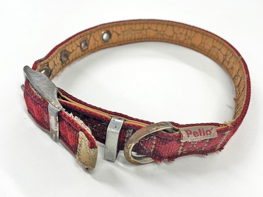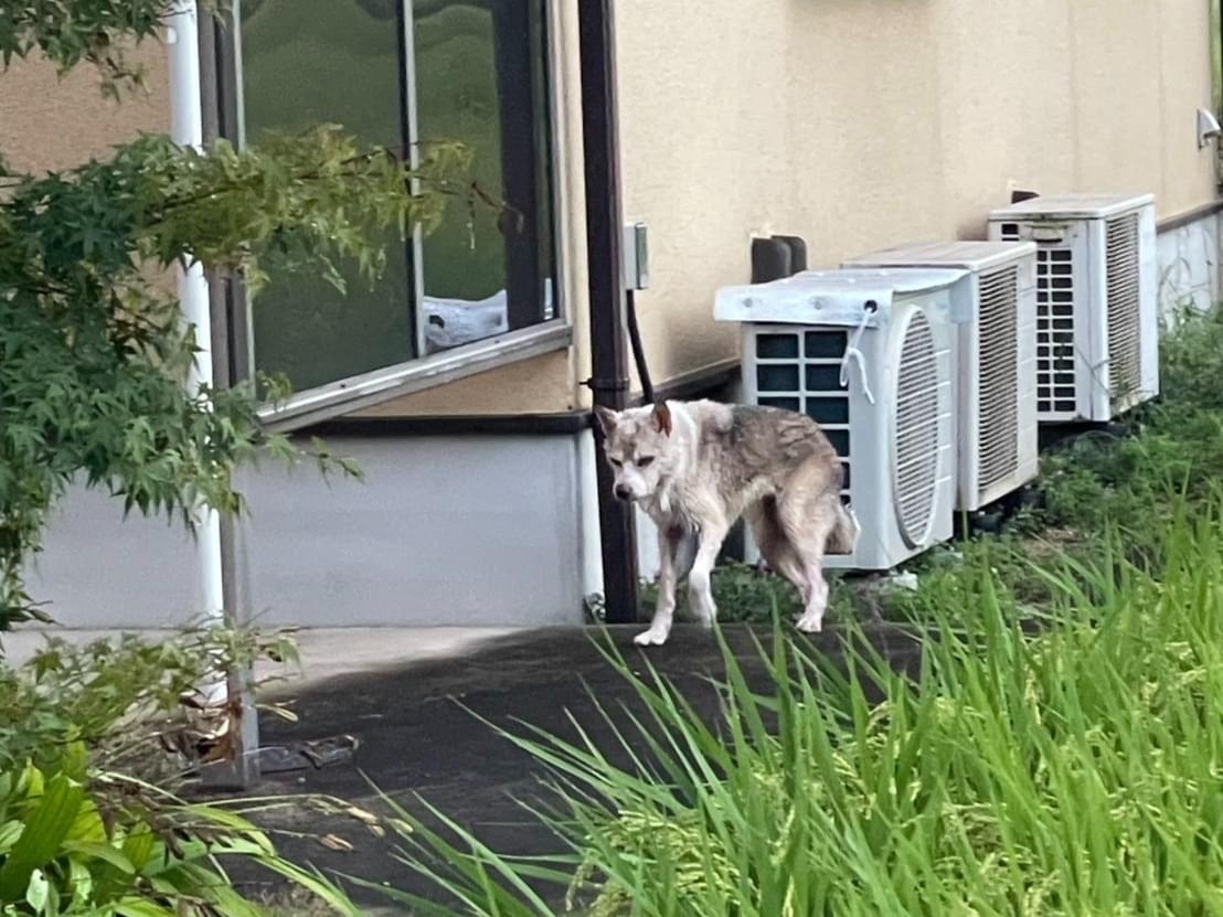 白・グレー・茶の中型犬 (外れた赤い首輪画像を追加)