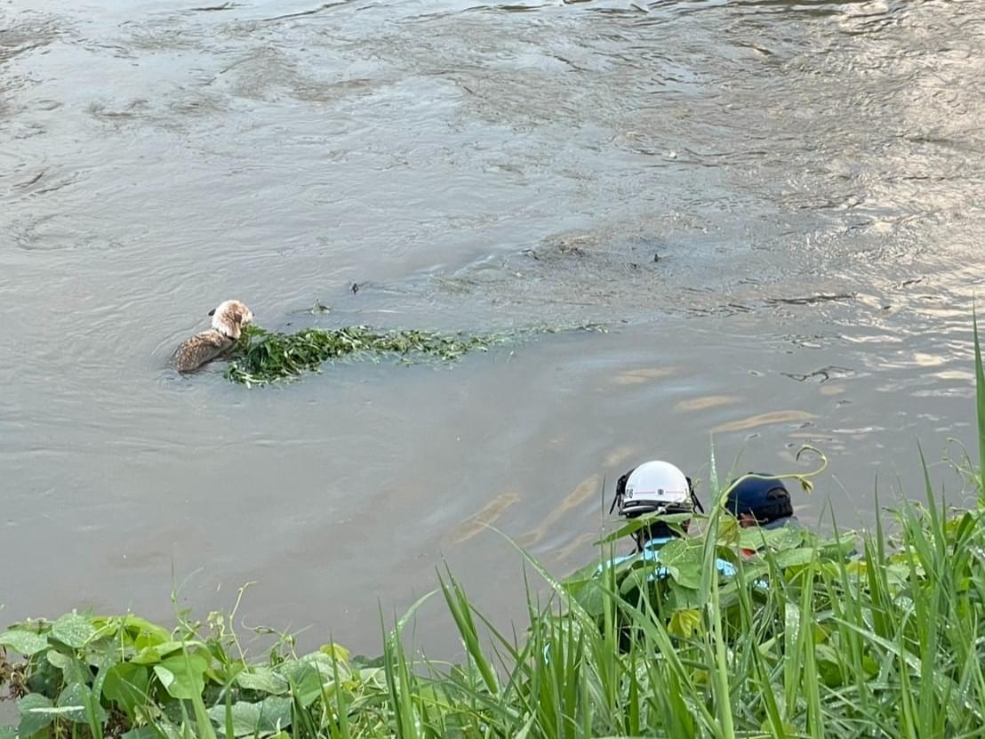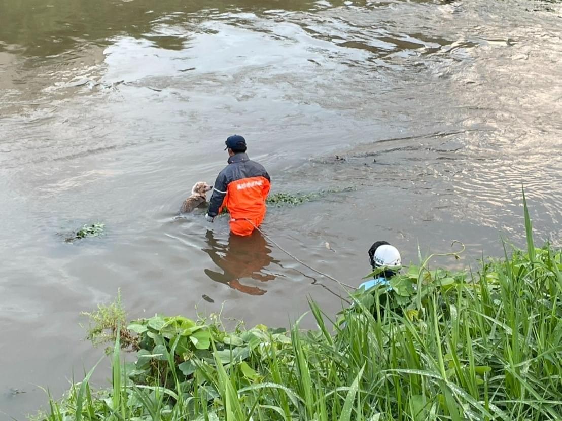 2025年9月16日(火)17時40分頃、六条町~由良町の古川(ps GABUの南方)に落ちて草に引っ掛かていた中型犬が消防隊の方に救助されましたが、その後、保護する前に逃げてしまいました。