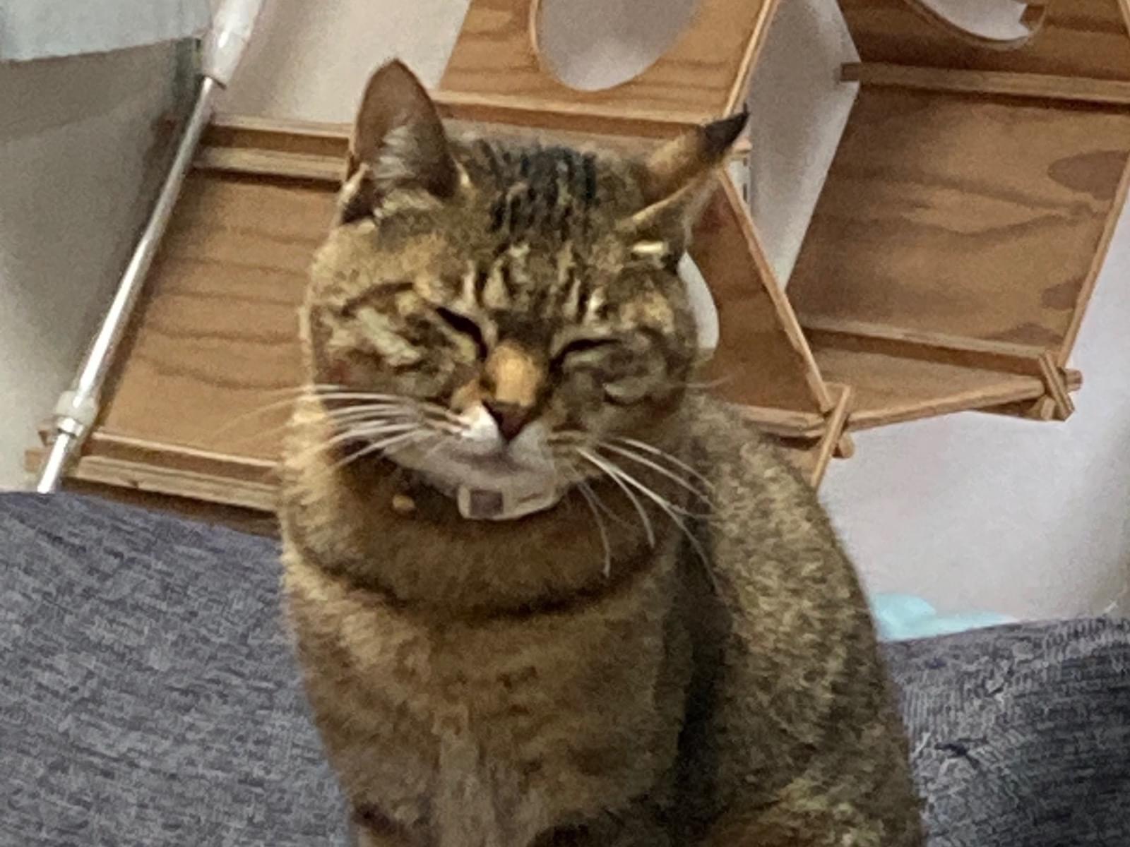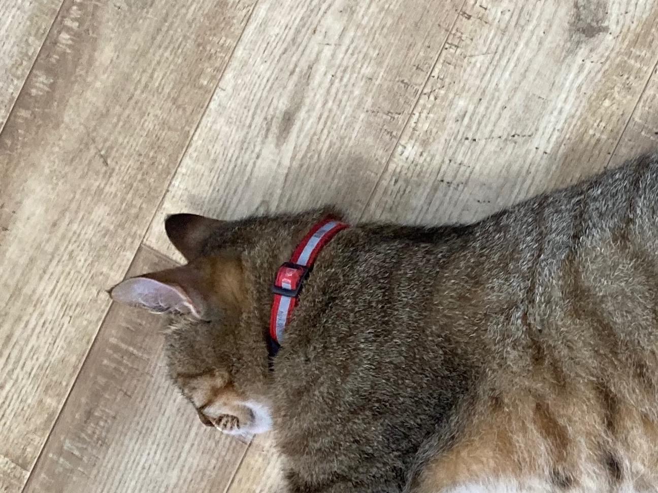 赤い首輪に反射板付き、連絡先付き。キジトラを探しています。