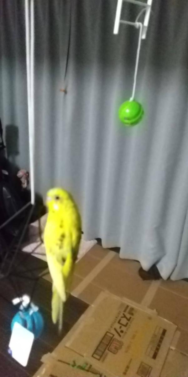 全体は黄色、お腹だけ緑色のセキセイインコを探してます