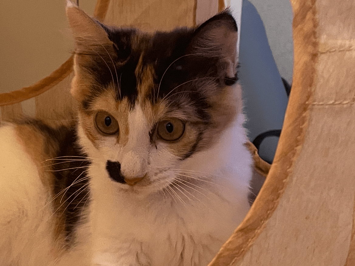 動物病院のワクチン接種に行ったところ、キャリーバックから自力で逃げ出しました。慎重なところがありますが、慣れるとおてんばです。