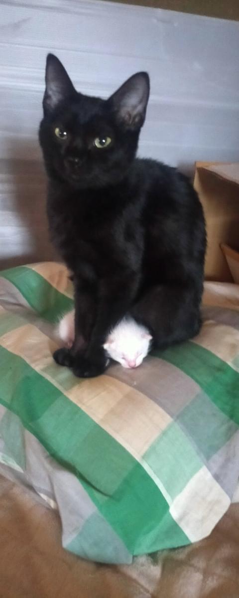 黒毛短毛で尻尾は長いです(先がやや曲ってます)