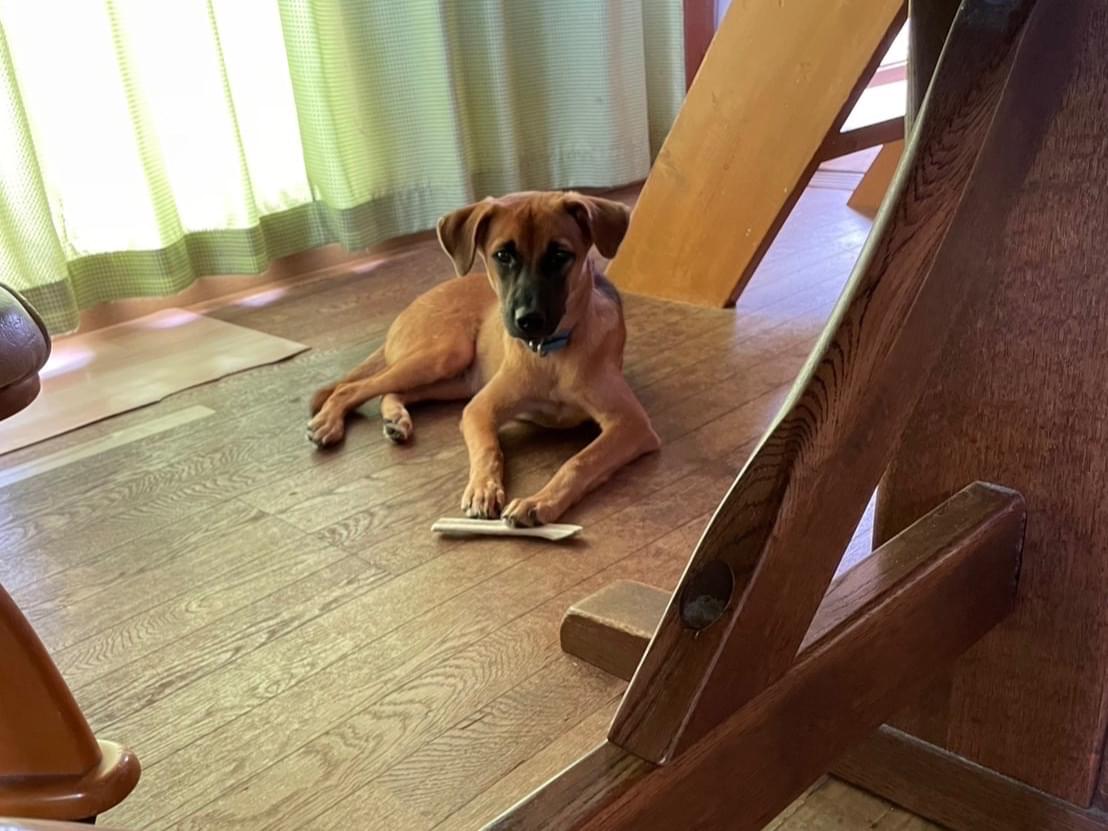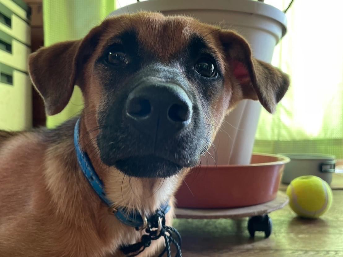 青の首輪の鼻が黒い犬を探してます!