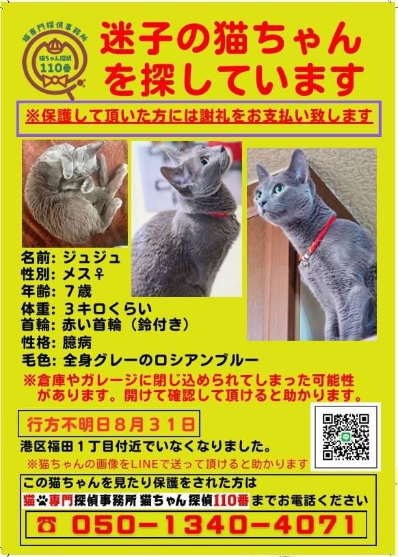 ホーム迷子猫愛知県ロシアンブルーを探し…ロシアンブルーを探しています管理編集するポスター掲載終了最終更新日時:2025/09/18 22:01写真情報用件迷子名前ジュジュ性別メス年齢7歳場所愛知県 名古屋市港区福田発生日時2025年8月31日(日)飼い主まゆみ説明完全室内猫ちゃんですので大人しいです かなり臆病 赤い首輪をしています連絡先URL未設定掲示板情報交換のための掲示板です。ユーザーからの情報提供、オーナーからの連絡などにご利用下さいませ。まだコメントはありません。トピックを作成する