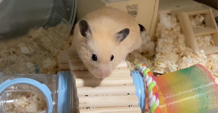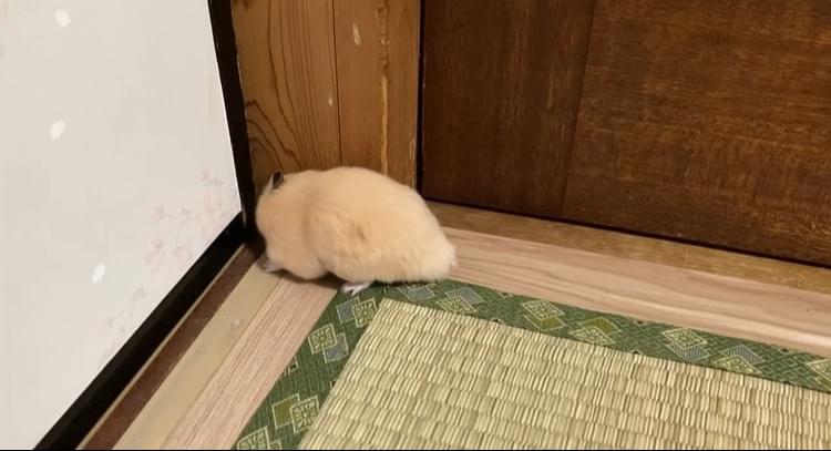 壁伝いに歩きます。壁の隅っこに隠れて毛繕いをする事が多いです。物陰や狭いところに入る、典型的なハムスターの行動パターンが多いです。
