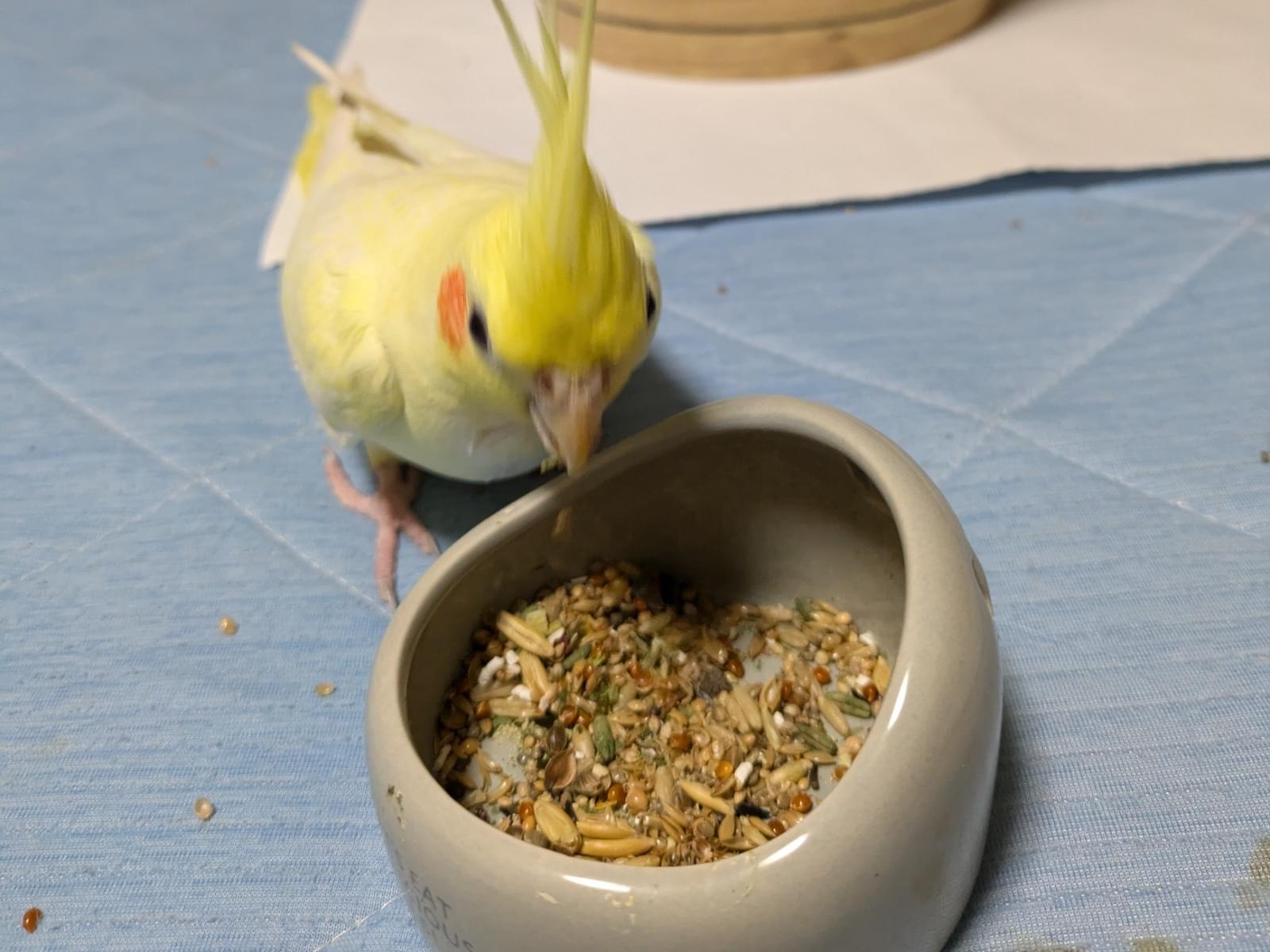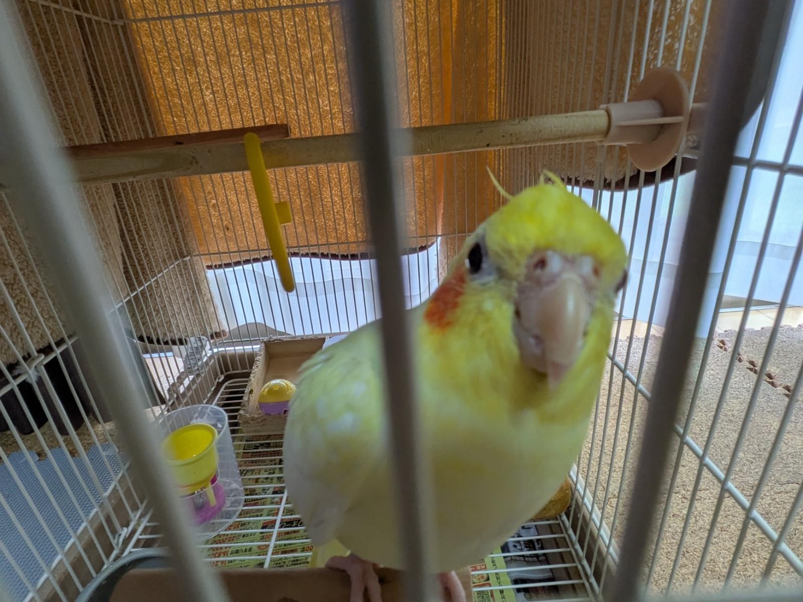 ほっぺが赤く、羽が少し汚れているオカメインコを探しています。