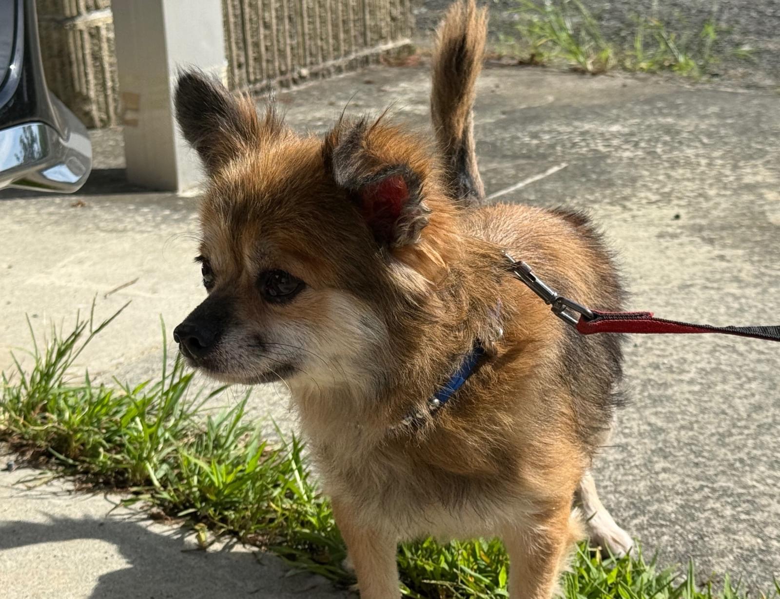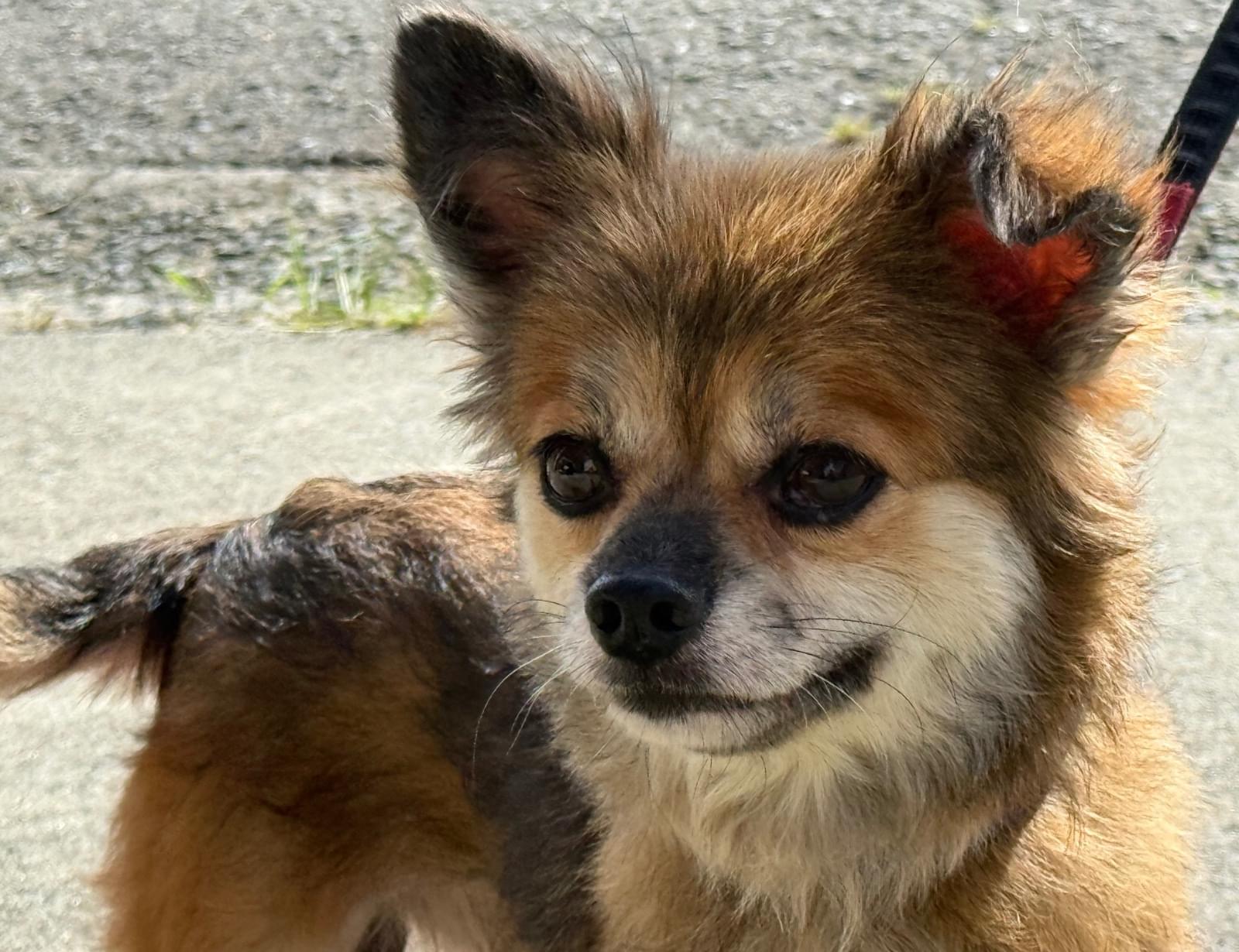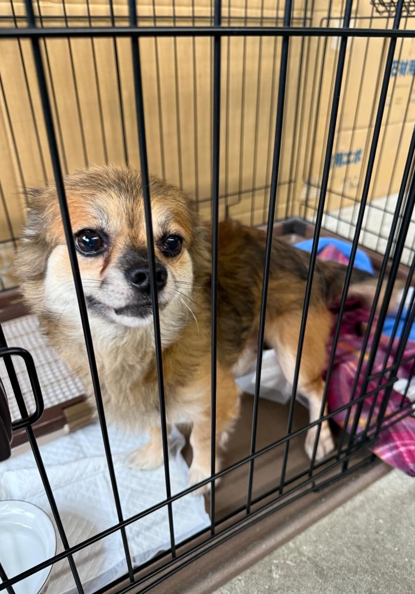茶色/黒色の混ざった雑種のような男の子のワンちゃんです。家の近所をふらふらと彷徨っていたので、保護しています。