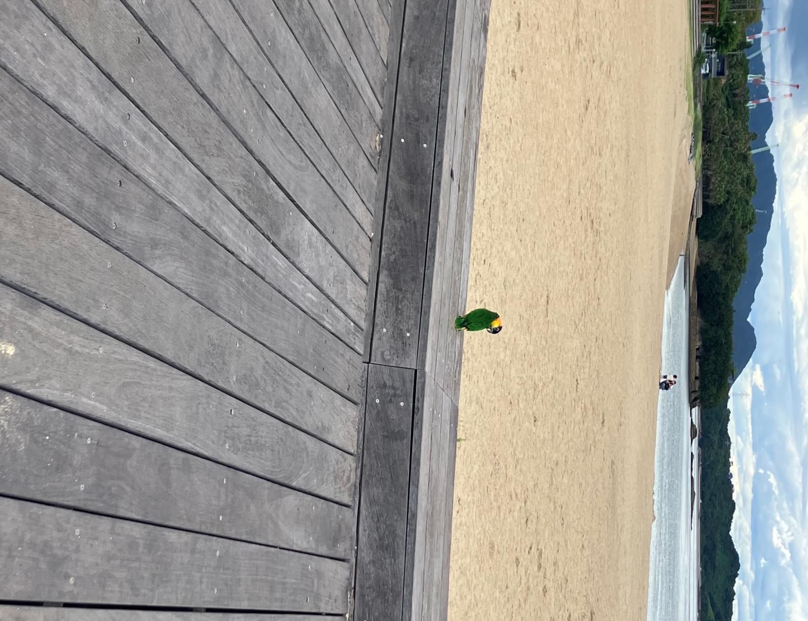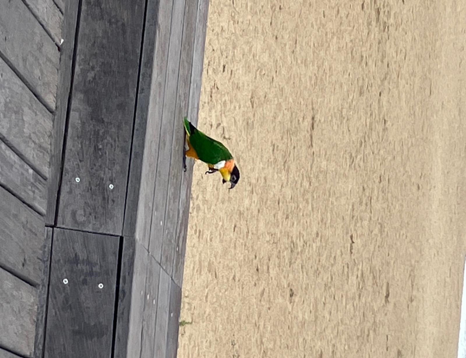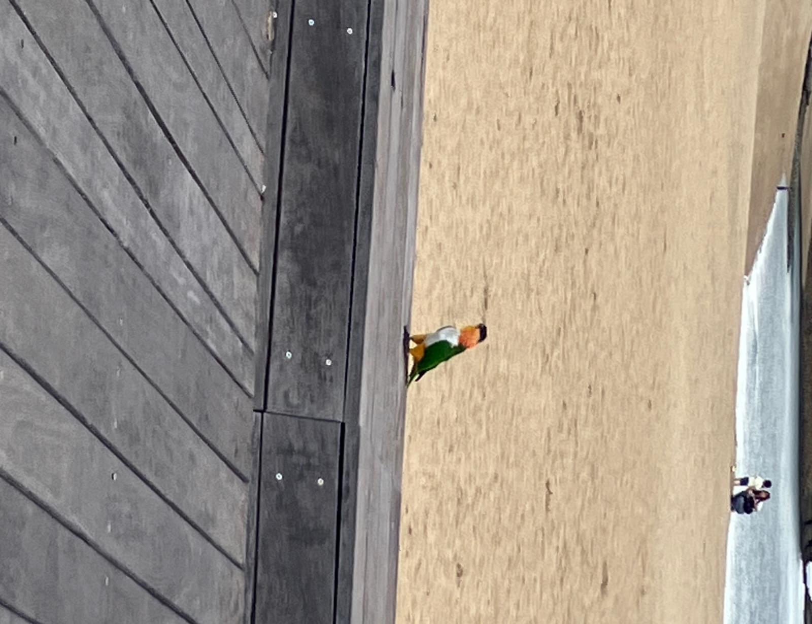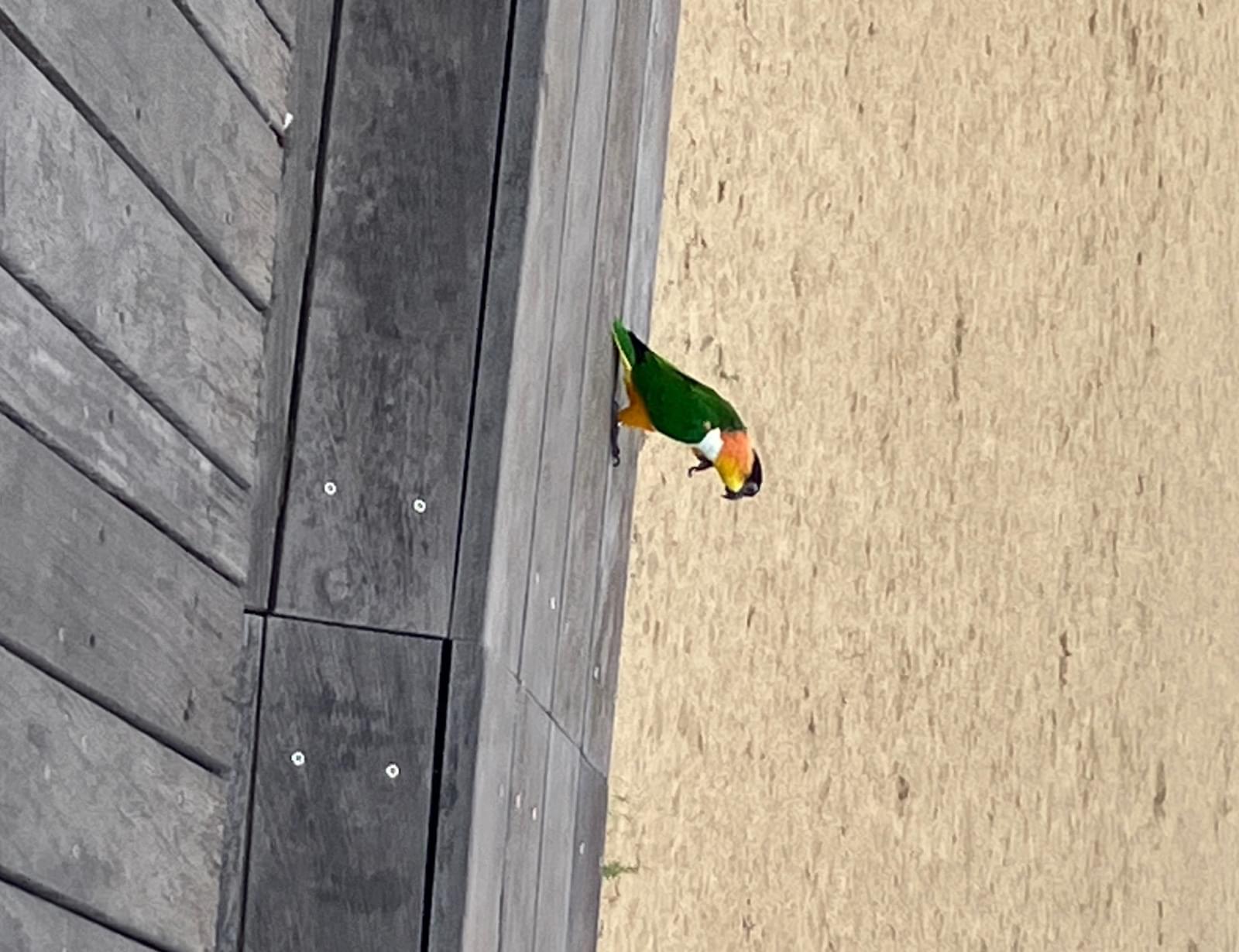 令和7年9月21日15時ごろ因島のしまなみビーチにズグロシラハラインコがいました。2m〜3mくらい右隣りの場所に50代から60代くらいの男性が座っていましたが、飼い主だったかはわかりません。