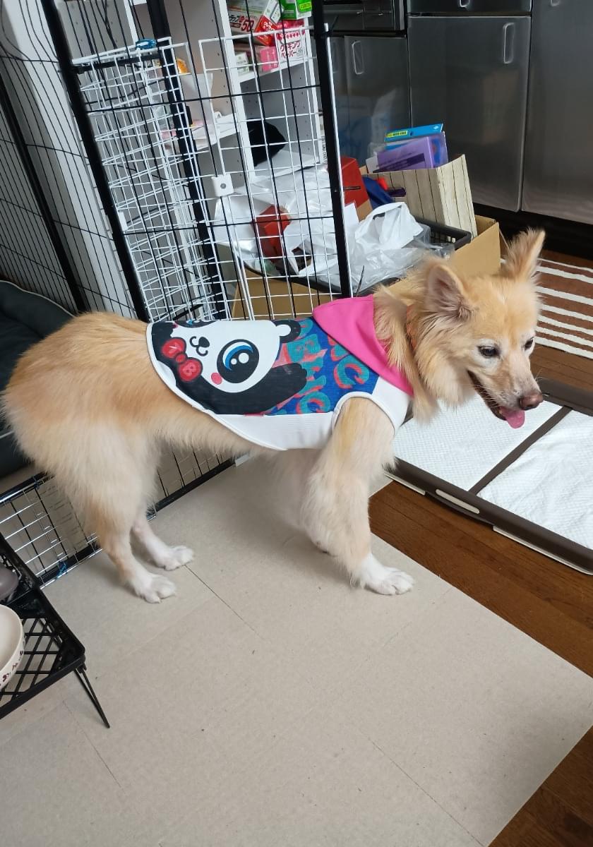 ゴールデンみたいな茶色に白い靴下風の毛色です。