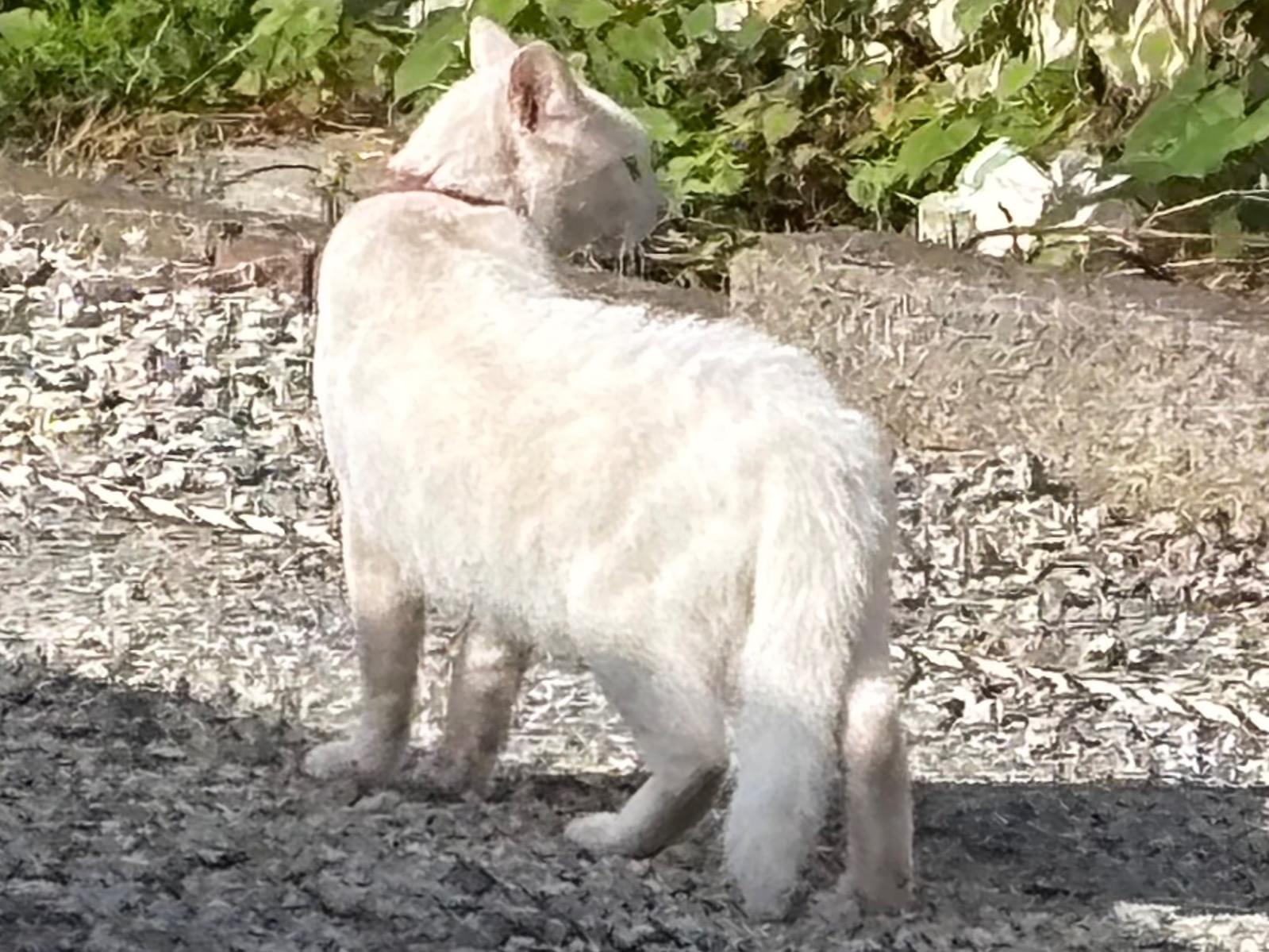 家の前の駐車場が野良猫の溜まり場のようなのですが、最近よく見かける子です。赤系統の首輪をつけているのが見えたので、もしかしたら迷い猫かと思い投稿してみました。遠目で画質が悪いですがイエローアイだと思います。警戒心は強めでした。